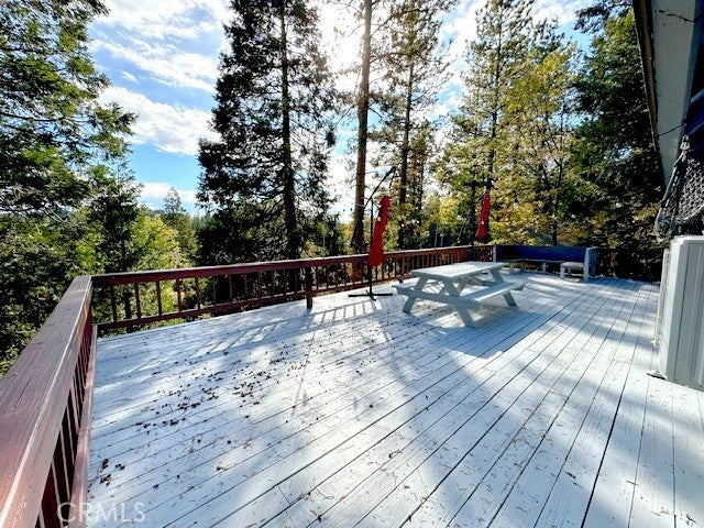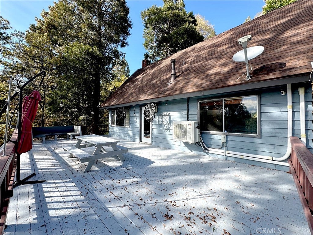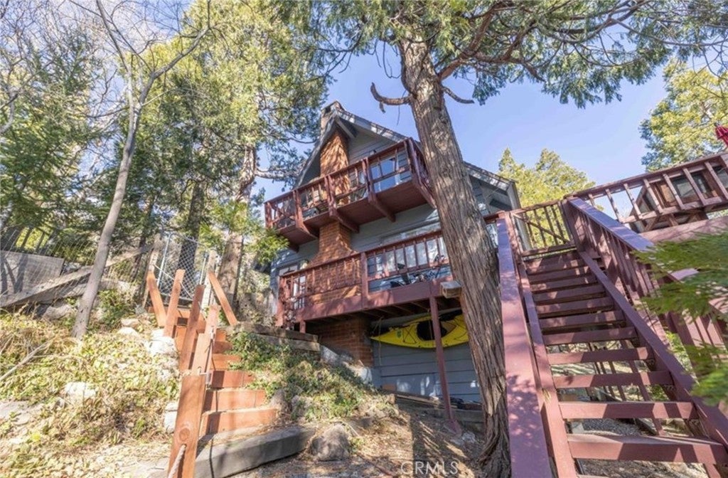 Welcome to Your Lake Arrowhead Mountain Retreat! Experience mountain living at its best in this beautiful home with lake rights! Featuring a dual entrance with level entry from the access road and additional parking off Bernina—a county-plowed and maintained road—this property offers year-round convenience and plenty of parking. Step inside to an inviting open-concept layout with a spacious living room, dining area, and kitchen—perfect for entertaining and relaxing. The living room features an impressive stone fireplace, beamed tongue-and-groove ceilings, and warm wood flooring that give the home a true mountain-lodge feel. The main level includes a bedroom and full bath, ideal for guests or single-level living. Upstairs, you’ll find two large bedrooms with vaulted ceilings and a full bathroom. Enjoy outdoor living on the oversized deck surrounded by serene tree views—perfect for gatherings, barbecues, or quiet mornings with coffee. The fenced yard adds extra privacy. Additional highlights include a new mini-split AC system for year-round comfort. Whether you’re looking for a full-time mountain home or a peaceful getaway with lake access, this home offers the perfect blend of charm, functionality, and location.