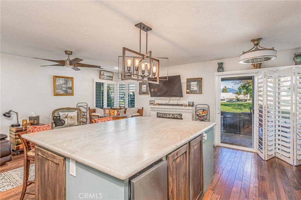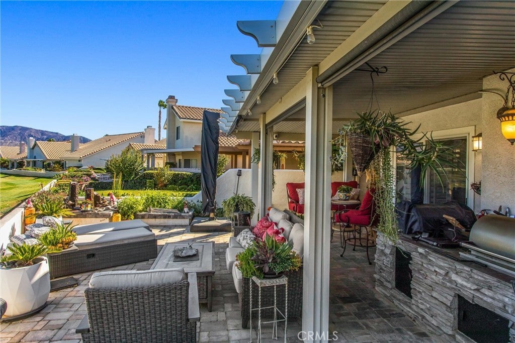 Welcome to a Contractor’s Masterpiece! When you’re injured, you need a doctor.?Toothache? A dentist. Tax problems? An accountant. And when you want the best-built home in the community — you buy a contractor’s home! This contractor has gone all-in on upgrades — there’s nothing left in his playbook that wasn’t used here. Located in the desirable Sun Lakes Country Club, a gated 55+ golf community, this exceptional home offers spectacular views of the San Gorgonio and San Jacinto Mountains and showcases pride of craftsmanship throughout. Three bedrooms/Three baths; Dramatic entry with vaulted ceilings, grand staircase, and elegant formal living/dining rooms; Open-concept kitchen, dinette, and family room with fireplace — seamlessly connecting to the rear patio for perfect indoor-outdoor entertaining; Designer kitchen remodel featuring mocha custom cabinetry (some with glass fronts), large quartz island, quartz countertops, built-in wine cooler, and stainless appliances worthy of a magazine spread; Imported Turkish barn doors lead to the multipurpose room — ideal for living room, gym, yoga, or office; Plantation shutters throughout; Breathtaking mountain views; Dual sinks, spacious walk-in shower, and custom walk-in closet built-ins; Convenient powder room for guests; Extras Included: Washer, dryer, refrigerator, and four mounted TVs. Enjoy everything Sun Lakes has to offer — two golf courses (Championship & Executive), three clubhouses, two restaurants, indoor and outdoor pools, tennis, pickleball, bocce, and an endless list of clubs and social events. 24-hour gate-guarded security and resort amenities make this one of the best-value communities in Southern California. Compare this value to San Diego, Orange County, or Los Angeles County — you’d pay at least twice as much for a home of this quality! IF YOU’RE LUCKY ENOUGH TO LIVE IN SUN LAKES – YOU’RE LUCKY ENOUGH!