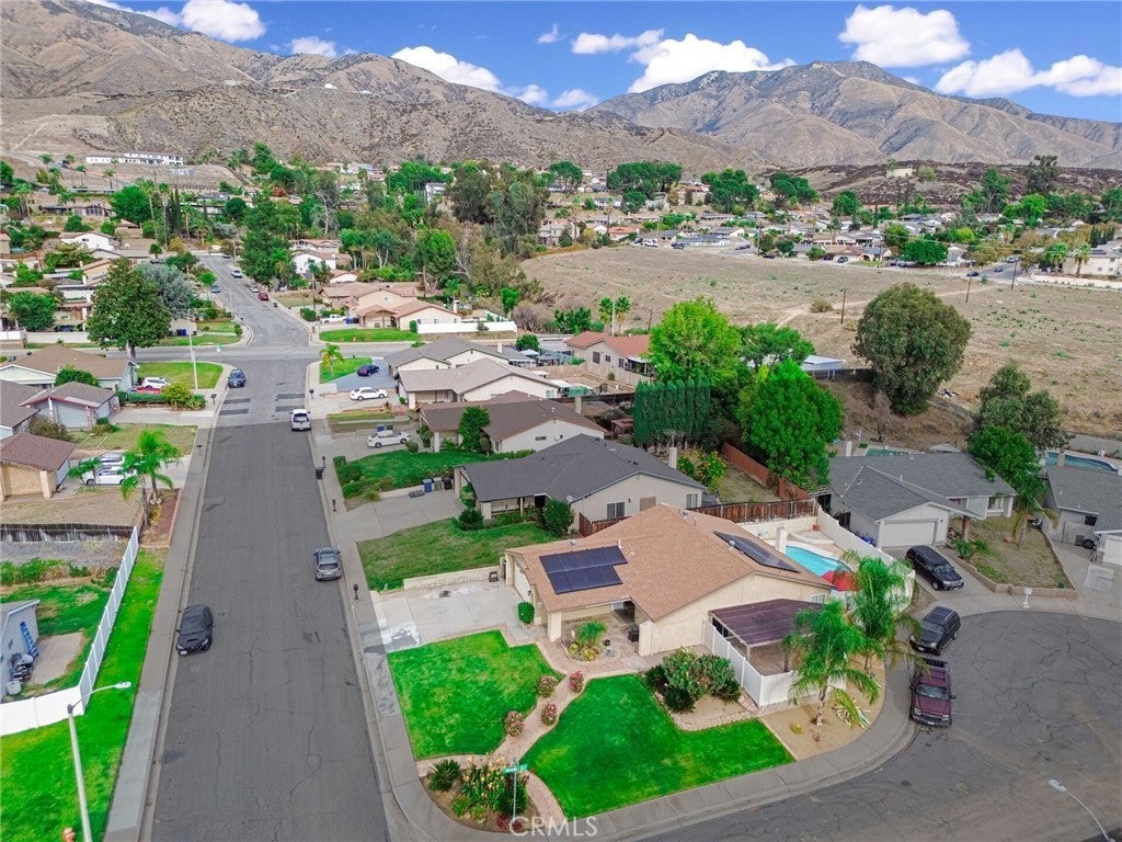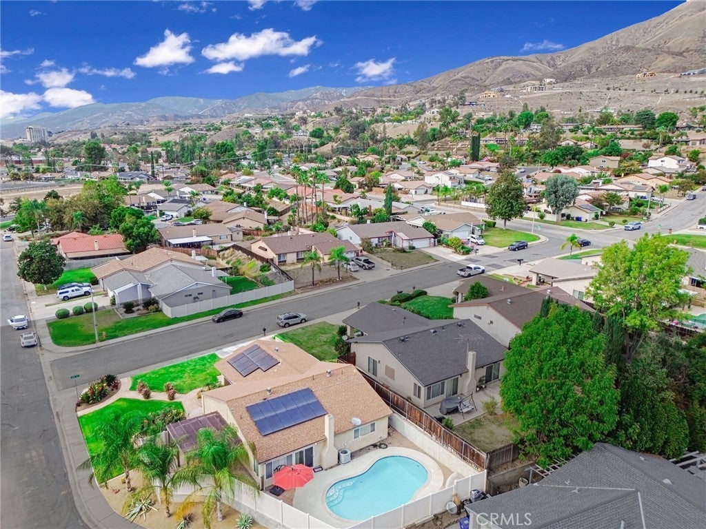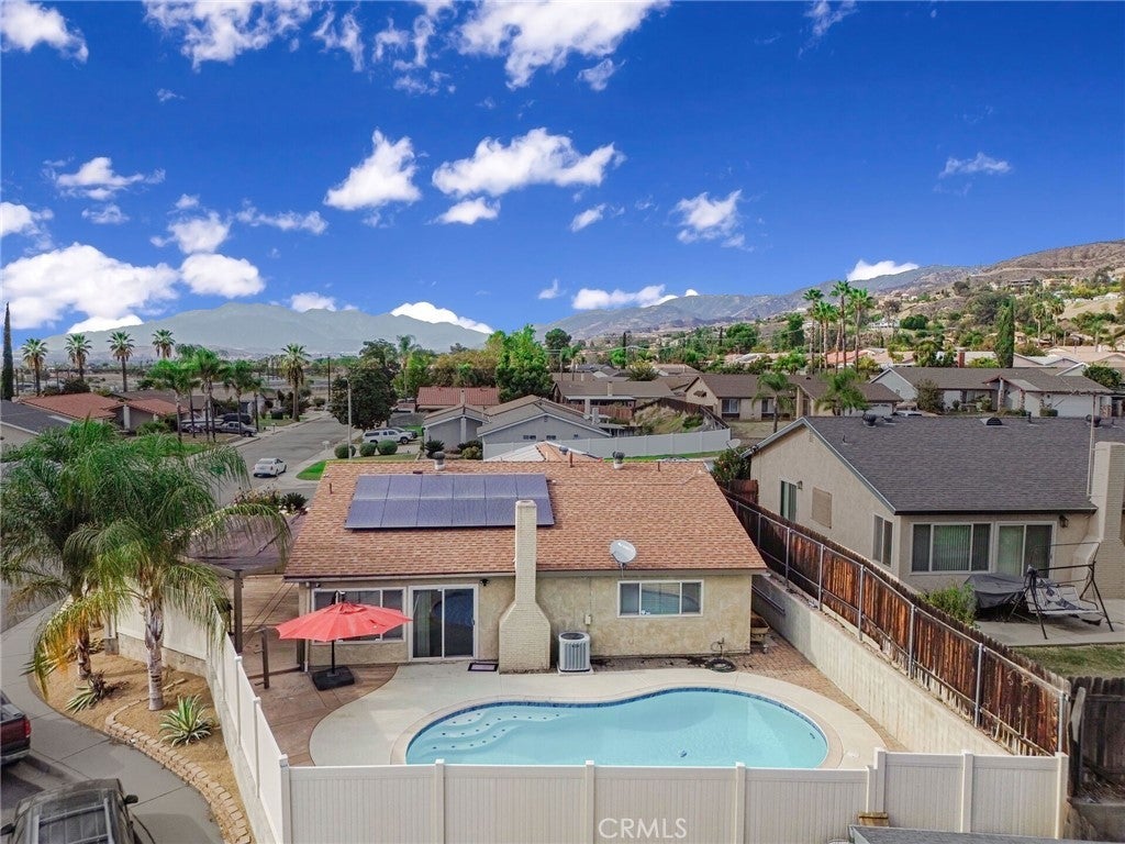 Beautiful Corner-Lot Home with Pool, Solar, and Mountain Views in the hills of Highland! Welcome to this beautifully maintained 3-bedroom, 2-bathroom home that perfectly combines comfort, efficiency, and style. Situated on a desirable corner lot, this property boasts amazing curb appeal with lush, well-kept landscaping, newer vinyl fencing and a welcoming exterior that instantly catches the eye. Step inside to a bright and inviting living space featuring a cozy fireplace, ideal for relaxing evenings. The open layout flows effortlessly to a roomy kitchen and dining area—perfect for family gatherings and entertaining guests. Enjoy year-round comfort and low energy costs with ample efficient solar panels, a whole-house fan, and a tankless water heater. Pride of ownership is evident throughout, from the immaculate interiors to the thoughtfully maintained yard. Outside, your private backyard retreat awaits! Cool off in the sparkling built-in pool, unwind under the large covered patio, and take in the quietness. This home truly has it all—modern efficiency, outdoor enjoyment, and timeless charm—all on a prime corner lot with unbeatable curb appeal. Don’t miss your chance to make this beautiful property your forever home!