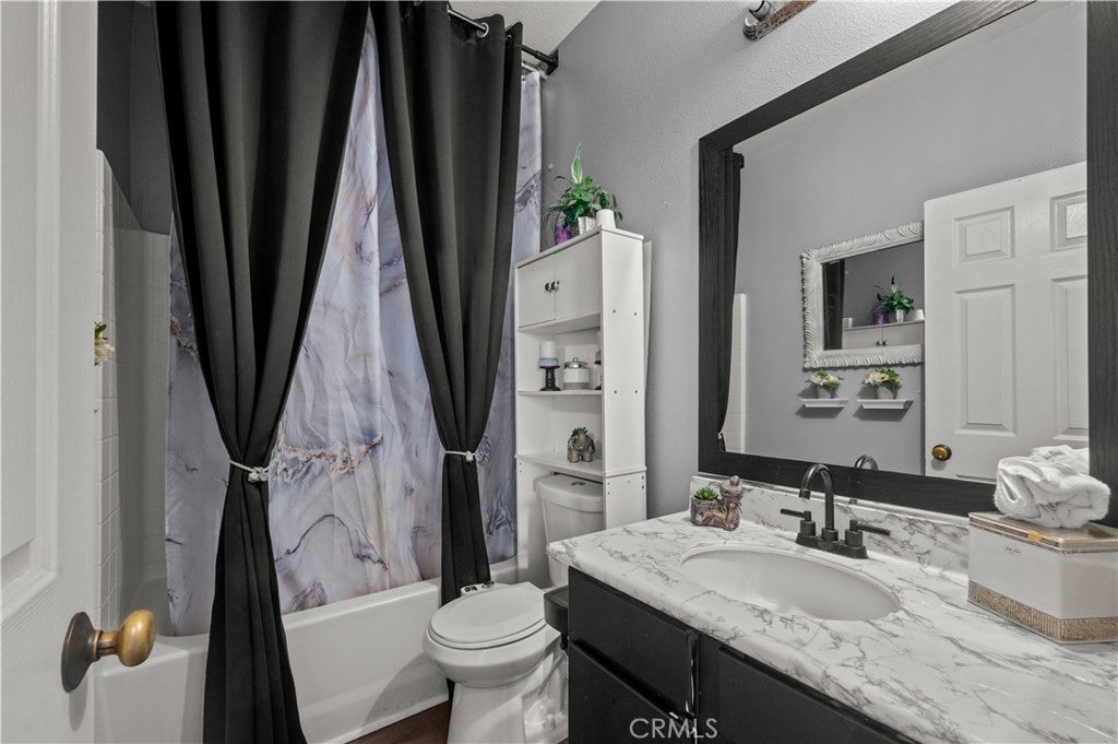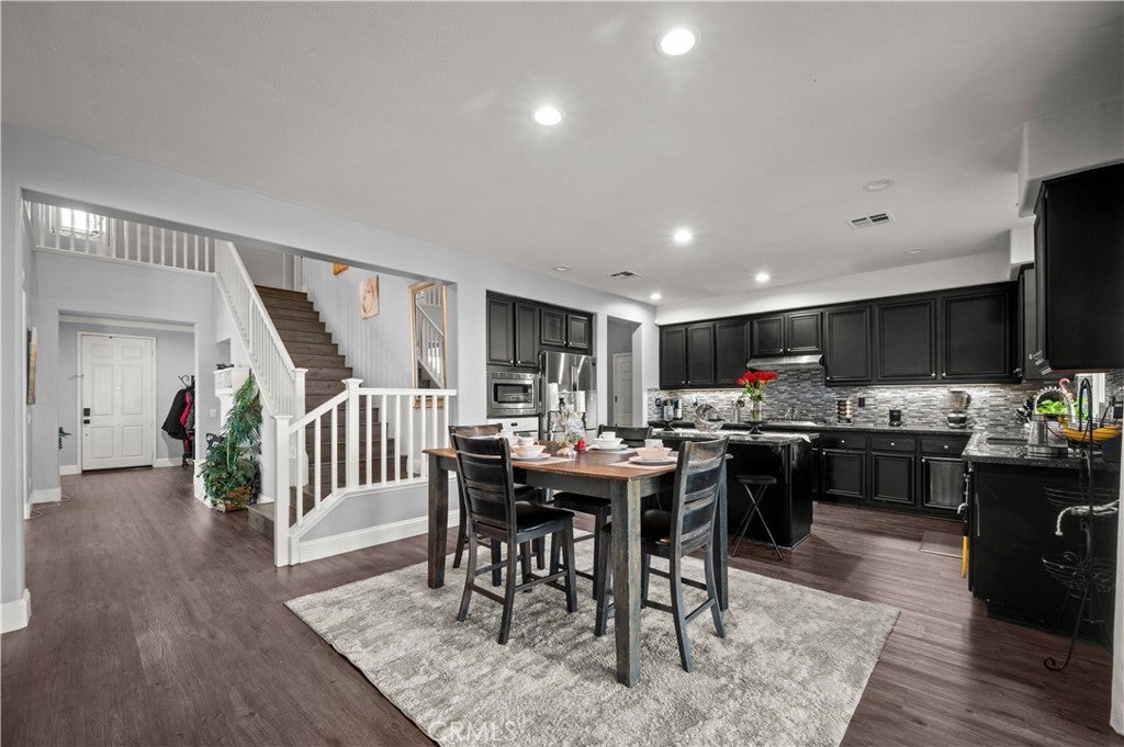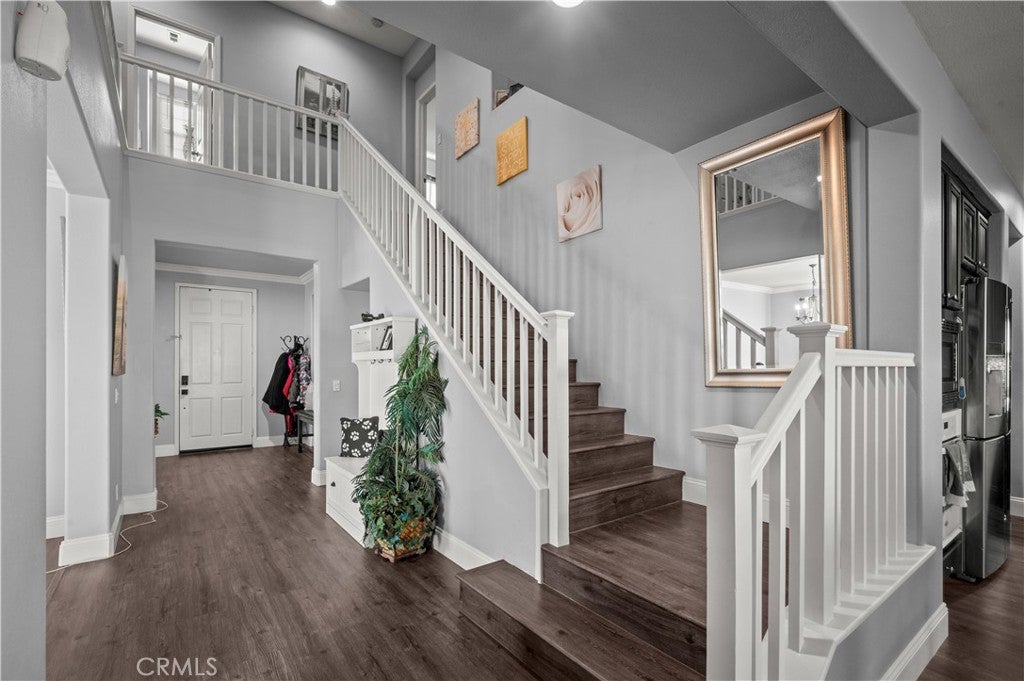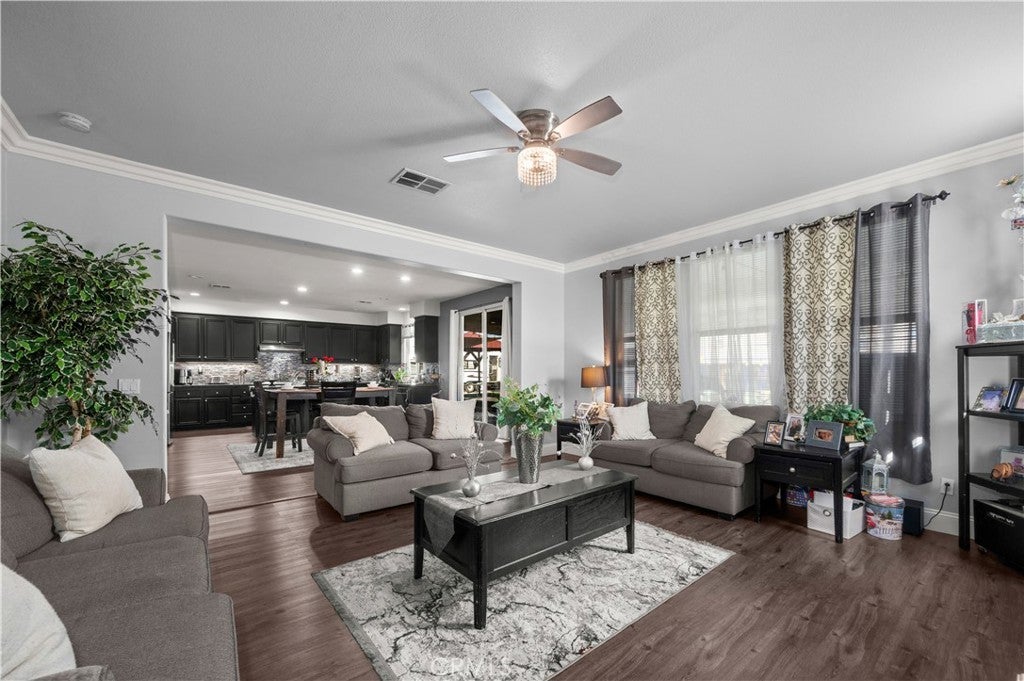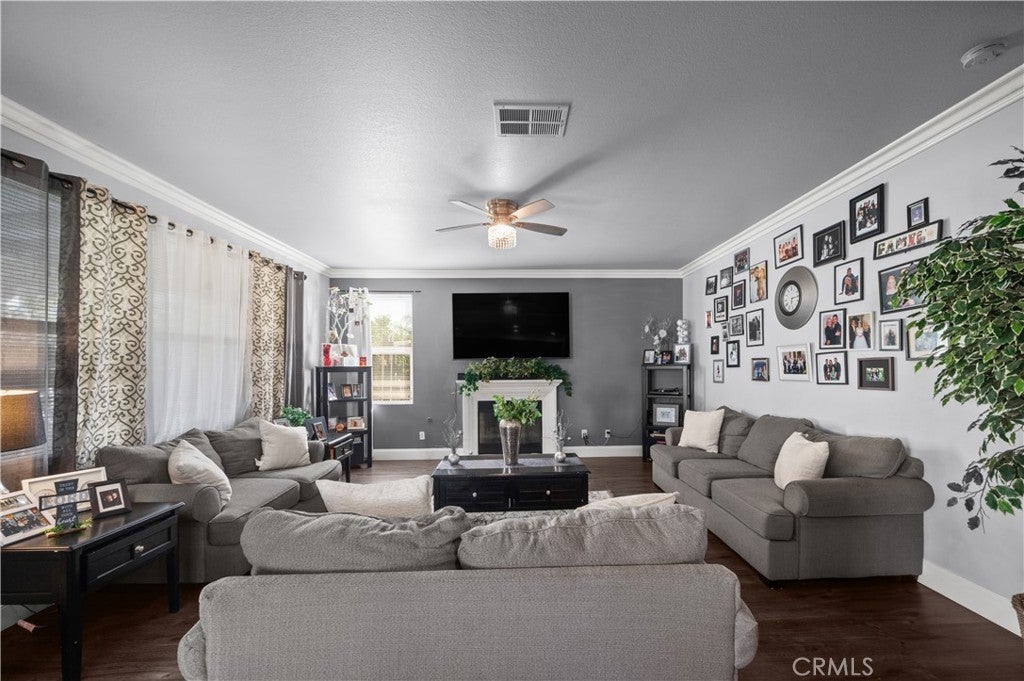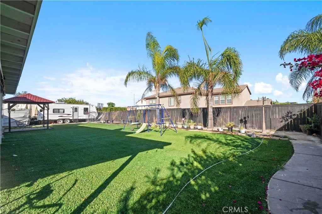 Welcome to your dream home in the heart of Moreno Valley! This stunning 5-bedroom, 3-bathroom residence perfectly combines space, comfort, and style. As you enter, you’re greeted by a beautifully maintained entrance and a private office to your right—ideal for working from home. The family room with a cozy fireplace and the formal dining area set the stage for gatherings and memorable moments. The gourmet kitchen offers granite countertops, an island and abundant cabinetry—a perfect setup for any home chef. A sliding glass door leads to the backyard patio area, great for outdoor dining and entertaining. The home’s design features a small cathedral ceiling, creating an open, airy feel throughout. For added convenience, there’s a downstairs bedroom and full bathroom, ideal for guests or multigenerational living. Upstairs, the spacious bedrooms offer plenty of comfort, including a luxurious primary suite with a walk-in closet and a beautifully updated ensuite bath. Enjoy year-round comfort with central A/C and modern updates throughout, including new lighting fixtures and vinyl flooring. Step outside to your private backyard oasis, complete with a gazebo wired for entertainment—perfect for gatherings with family and friends. A 3-car garage and extra-wide driveway provide ample parking for vehicles, an RV, or recreational toys. Conveniently located near schools, shopping centers, parks, and major freeways, this exceptional Moreno Valley home offers both tranquility and accessibility. Come fall in love with the space, charm, and comfort this home has to offer!