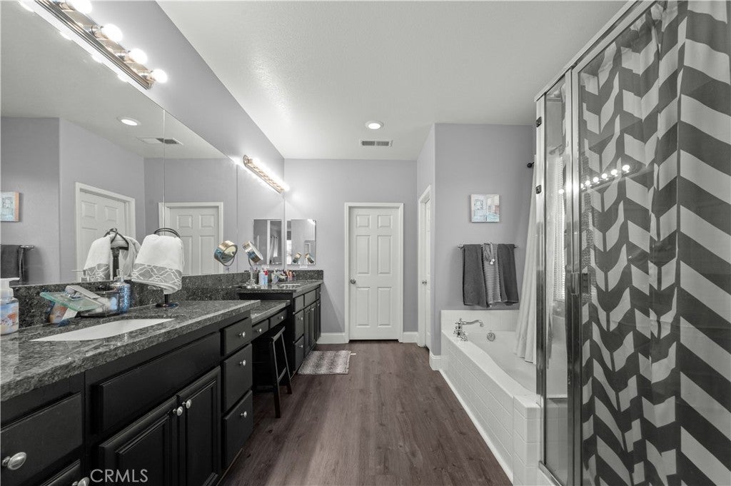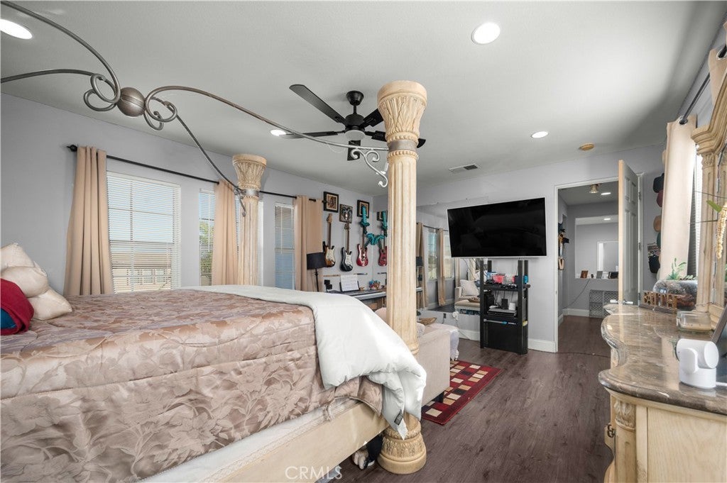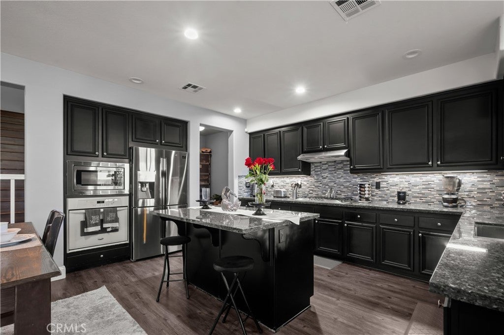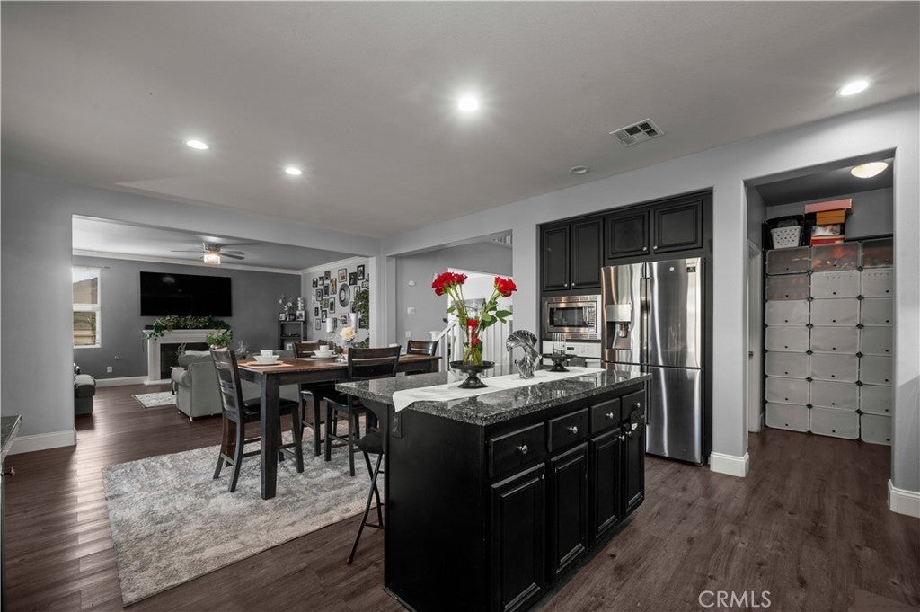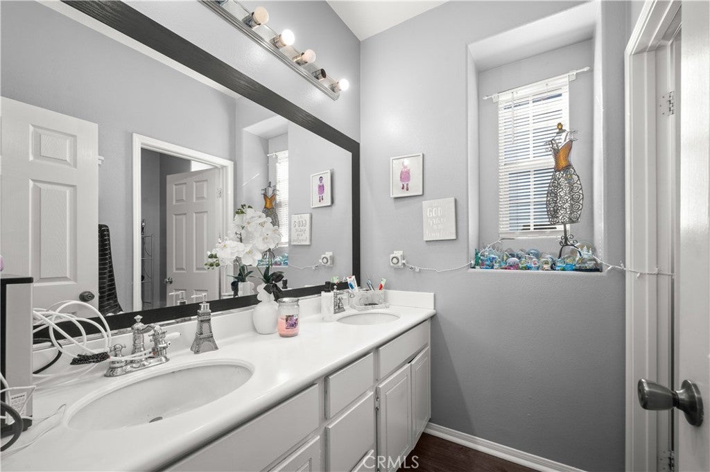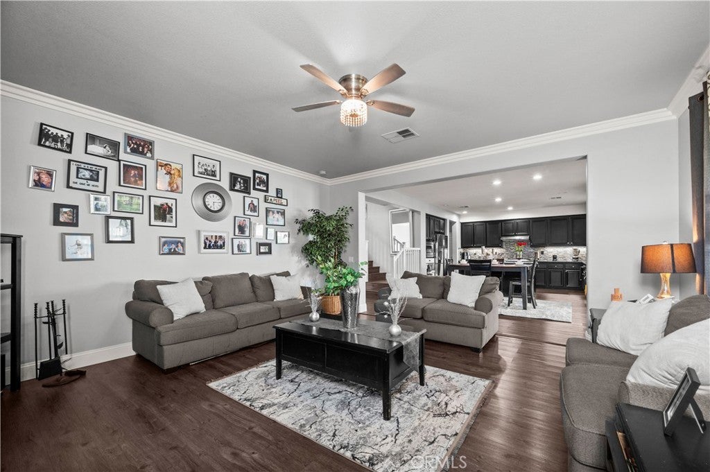 Welcome to your dream home in the heart of Moreno Valley! This stunning 5-bedroom, 3-bathroom residence perfectly combines space, comfort, and style. As you enter, you’re greeted by a beautifully maintained entrance and a private office to your right—ideal for working from home. The family room with a cozy fireplace and the formal dining area set the stage for gatherings and memorable moments. The gourmet kitchen offers granite countertops, an island and abundant cabinetry—a perfect setup for any home chef. A sliding glass door leads to the backyard patio area, great for outdoor dining and entertaining. The home’s design features a small cathedral ceiling, creating an open, airy feel throughout. For added convenience, there’s a downstairs bedroom and full bathroom, ideal for guests or multigenerational living. Upstairs, the spacious bedrooms offer plenty of comfort, including a luxurious primary suite with a walk-in closet and a beautifully updated ensuite bath. Enjoy year-round comfort with central A/C and modern updates throughout, including new lighting fixtures and vinyl flooring. Step outside to your private backyard oasis, complete with a gazebo wired for entertainment—perfect for gatherings with family and friends. A 3-car garage and extra-wide driveway provide ample parking for vehicles, an RV, or recreational toys. Conveniently located near schools, shopping centers, parks, and major freeways, this exceptional Moreno Valley home offers both tranquility and accessibility. Come fall in love with the space, charm, and comfort this home has to offer!