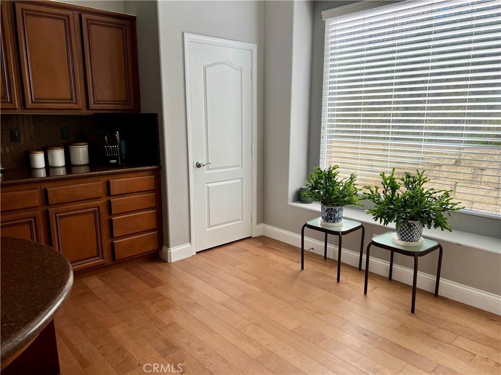 Beautiful single story house with upgrades in a gated 55+ community. The Manzanita model is a popular model. Open floorplan. Ceiling fans. Nice wood flooring throughout. Granit countertops in kitchen with nice island. Stainless Steel appliances. 2 bedrooms a den and 2 bathrooms. 1671 Square Feet. Cabinets in hallway and bathroom. Fireplace in Livingroom and entertainment nook. Nicely landscaped yard with turf, flowers, bushes and trees. View to the valley. Covered side patio. 2 car garage with built in cabinets and side door to the side yard. Trilogy have great areas for playing tennis, pickleball, bocce ball plus a nice sports center with a gym and classes. Also an indoor and outdoor pool with BBQ area. A lodge with Ping-Pong, Art, card playing, billiard. Dinners and dancing. Glen Ivy Golf club around the community as well. Outdoor concerts and dancing. Situated by the beautiful Cleveland Forrest. Close to the freeways, shopping and restaurants.