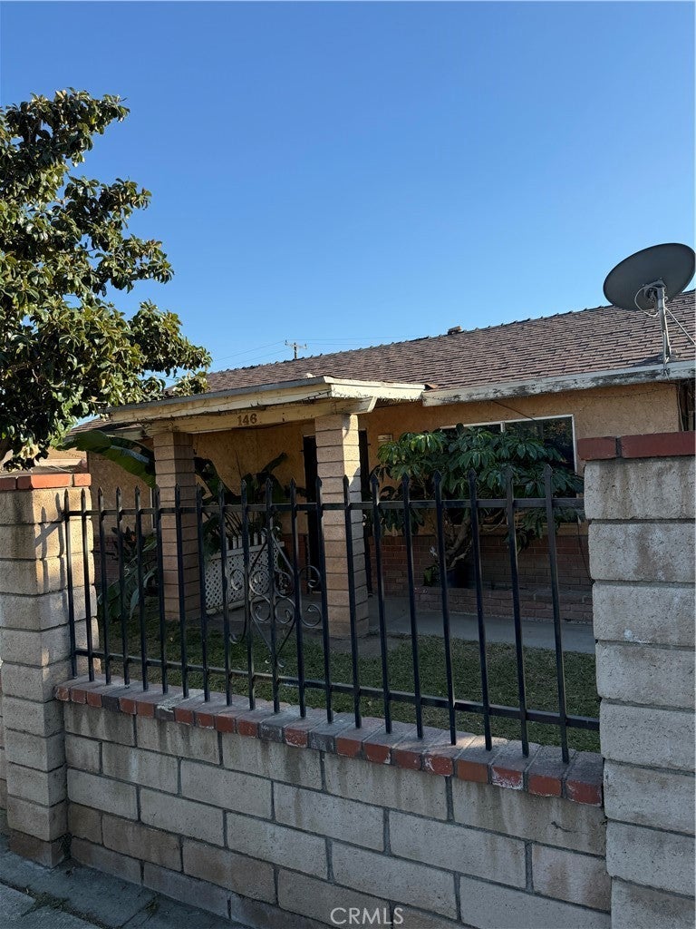This property is completely gated with the front having masonry and wrought iron. It's in need of TLC and your touches will make it your personal styled home. The galley kitchen is situated in the middle of the home and two bedrooms to one side. The bathroom with shower is conveniently located at the end of the hall. There are gas washer and dryer hookups, a carport leading to the backyard. Close to Rancho Avenue, Colton High School and nearby Valley Boulevard to the 10 Freeway, shopping and restaurants. Make this your forever home!