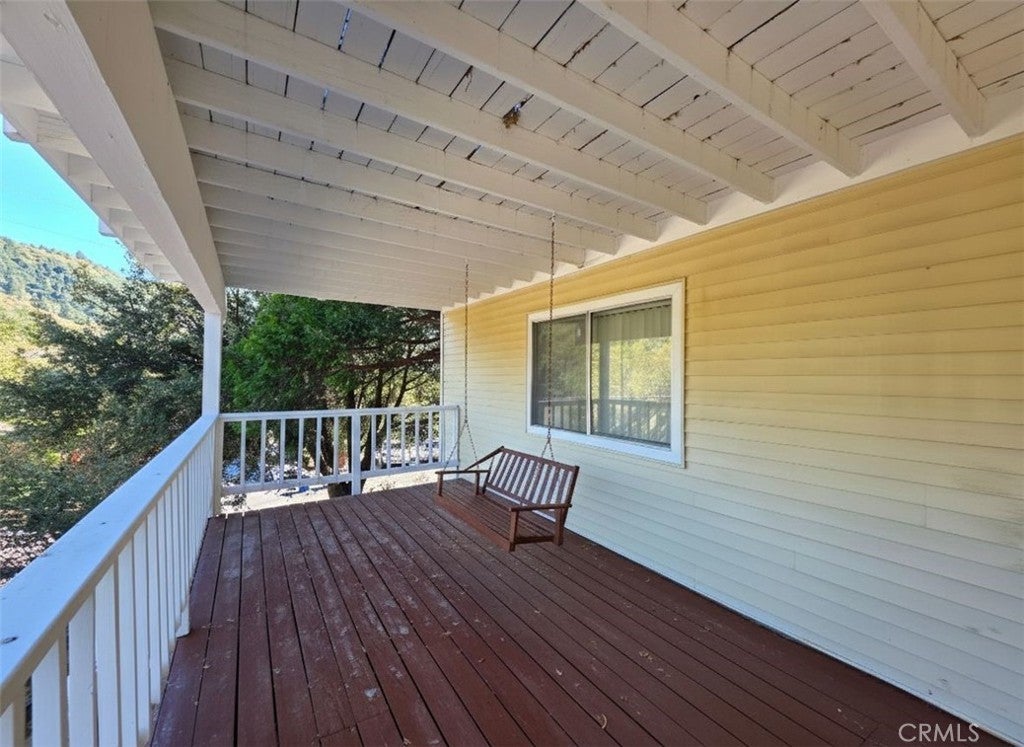 Crestline’s “D Streets” offers this versatile San Moritz residence blending easy-care vinyl siding, two decks for outdoor living, and a layout that flexes with today’s needs. Entry is into a welcoming flex room anchored by a wood-burning stove fireplace; the full laundry room and a half bath sit nearby, and the entry-level primary suite provides a deep closet and full bath for convenient single-level living. Upstairs, an open-concept kitchen / living / dining area orients gatherings around a breakfast bar and opens to the upper deck, where far forest and mountain views frame the treetops. Two additional bedrooms share an oversized Jack-and-Jill bath with built-in storage, and a den functions as an optional fourth bedroom or dedicated office. Outside, a covered entry deck with a porch swing extends daily life into the fresh air, while the level, fenced back yard supports pets, play, or garden use. Recent improvements add low-maintenance peace of mind: new full interior paint, exterior deck paint, new granite kitchen countertops, and a new septic tank/system. The home measures approximately 2,120 sq ft, built in 1984 on a roughly 6,100 sq ft lot. Everyday conveniences and recreation are close at hand—about 0.6 mi to San Moritz Lodge on Lake Gregory, roughly 0.9 mi to Lake Gregory Regional Park with the lake trail and beaches, around 1.0 mi to Goodwin’s Market and Higher Grounds Coffee, and about 1.5 mi to Sycamore Ranch Winery on Dart Canyon Rd. See the 3D tour, floor plan, and photos for a clear understanding of the layout, finishes, and views.