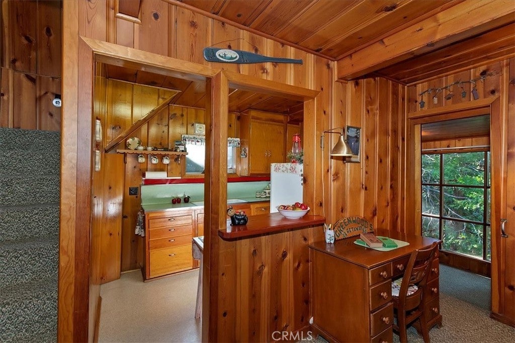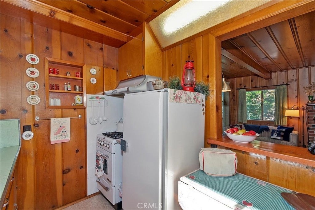 First time on the market in 25 years, a well maintained and loved 2-bedroom, 1 bath home reminiscent of the 1940's -1950's. Adorable, vintage cabin you are the apple of my eye! Walk into the kitchen filled with apple decor along with Formica counters, original cupboards and vintage oven and refrigerator. Beautiful wood paneling throughout and a wood fireplace add to the coziness of this home. Large windows bring in light and let you have unobstructed views of the trees and a variety of native birds. The cabin is located close to the highway but still a quiet neighborhood. Level parking for at least 3 cars. Front and back patios add to the space along with a shed, a bonus room down below and a buildup with room for storage. The lot runs from Cedar Lane to Rose Lane. The roof was replaced in 2015 and has a lot of life left in it. This would be a great full time or part time home in the mountains. Make your appointment today!