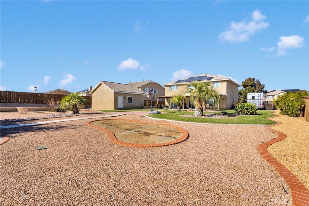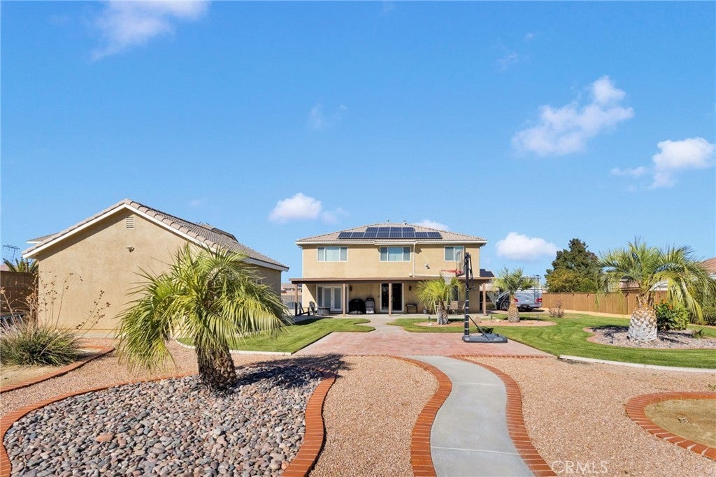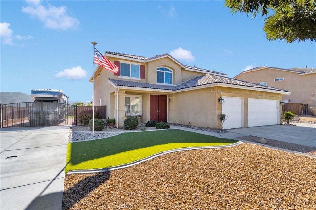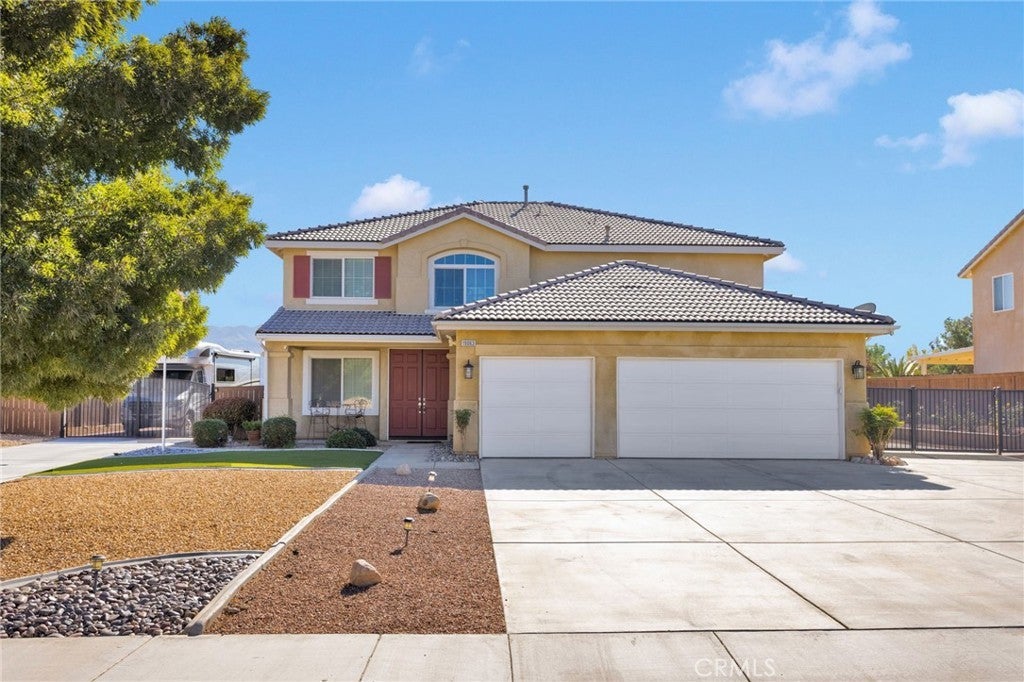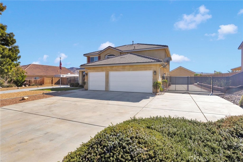 Stunning 5-Bedroom Desert Mountain-View Home in Prime Hesperia Location! Discover your dream oasis in this welcoming two-story home, perfectly situated in a desirable neighborhood with breathtaking backyard views of the majestic mountains. Enjoy spectacular sunsets from the beautifully landscaped yard, or unwind on the charming front porch. Inside, the spacious open-concept layout offers two inviting living areas, ideal for entertaining or hosting gatherings. Bedrooms & Baths: Five generous bedrooms, including two primary suites (one upstairs and one downstairs with an economical mini split air system and built-in Murphy bed), plus three full baths and one convenient half bath on the main level. Garage & Parking Galore: A massive 5-car garage setup, featuring a 3-car attached garage with an EV charger and a 2-car detached garage. There’s also ample RV parking with a 30-amp hookup and sewer connection! Outdoor Paradise: Take in direct views of the nearby desert hills and enjoy being just 1.5 miles from Hesperia Lakes, the perfect spot to watch fireworks! Nearby off-roading trails make this location a dream for outdoor enthusiasts. Solar panels to be paid off in escrow. Wellness Bonus: Relax and recharge in your very own 3-person infrared sauna. Close to everything Hesperia has to offer, yet tucked away in a peaceful, scenic setting, this home truly has it all!