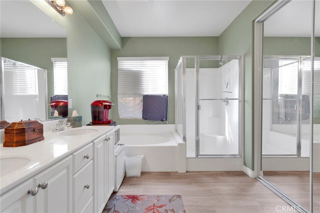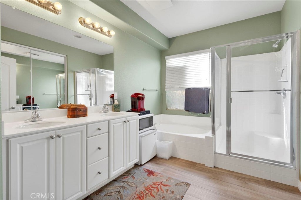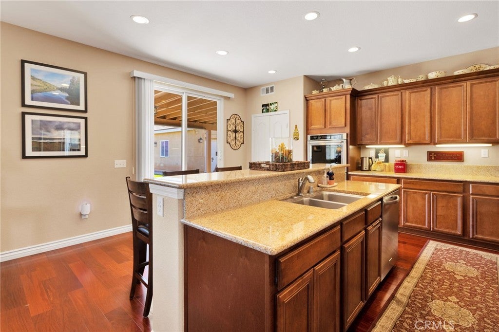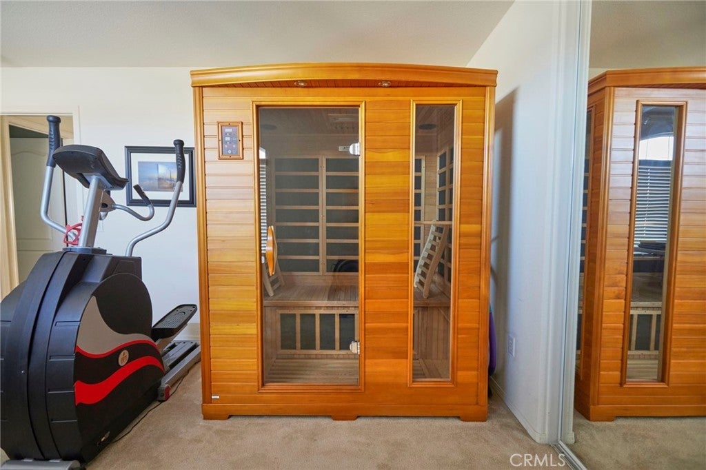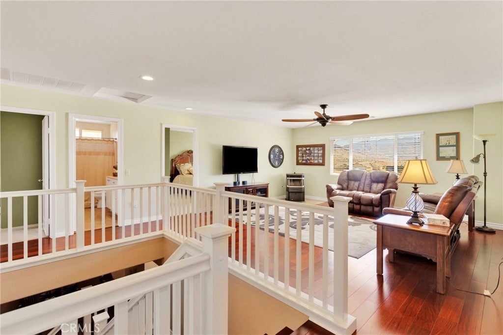 Stunning 5-Bedroom Desert Mountain-View Home in Prime Hesperia Location! Discover your dream oasis in this welcoming two-story home, perfectly situated in a desirable neighborhood with breathtaking backyard views of the majestic mountains. Enjoy spectacular sunsets from the beautifully landscaped yard, or unwind on the charming front porch. Inside, the spacious open-concept layout offers two inviting living areas, ideal for entertaining or hosting gatherings. Bedrooms & Baths: Five generous bedrooms, including two primary suites (one upstairs and one downstairs with an economical mini split air system and built-in Murphy bed), plus three full baths and one convenient half bath on the main level. Garage & Parking Galore: A massive 5-car garage setup, featuring a 3-car attached garage with an EV charger and a 2-car detached garage. There’s also ample RV parking with a 30-amp hookup and sewer connection! Outdoor Paradise: Take in direct views of the nearby desert hills and enjoy being just 1.5 miles from Hesperia Lakes, the perfect spot to watch fireworks! Nearby off-roading trails make this location a dream for outdoor enthusiasts. Solar panels to be paid off in escrow. Wellness Bonus: Relax and recharge in your very own 3-person infrared sauna. Close to everything Hesperia has to offer, yet tucked away in a peaceful, scenic setting, this home truly has it all!