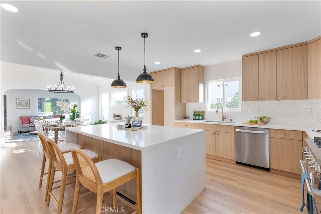 Step into this beautifully updated 2-bedroom, 2-bathroom home nestled on a tree-lined street in the heart of Mid-City. Boasting an open and inviting floor plan. This charming residence features a spacious living area with abundant natural light, vinyl hardwood floors, and a seamless flow into the dining and kitchen spaces—perfect for entertaining. The remodeled kitchen offers modern finishes, ample cabinetry, and a large island perfect for casual eating and entertaining. The generous primary suite includes a remodeled en-suite bathroom. Enjoy California living with a fully fenced private back yard, ideal for outdoor dining, relaxing, or play. Additional highlights include updated systems, central heating and air, new windows, new water heater, and a long driveway that leads to the garage for extra off street parking . Centrally located with easy access to Culver City, Downtown LA, the Expo Line, and some of the city’s best dining, shopping, and entertainment. Don’t miss this opportunity to own a move-in ready gem in one of LA’s most vibrant neighborhoods!