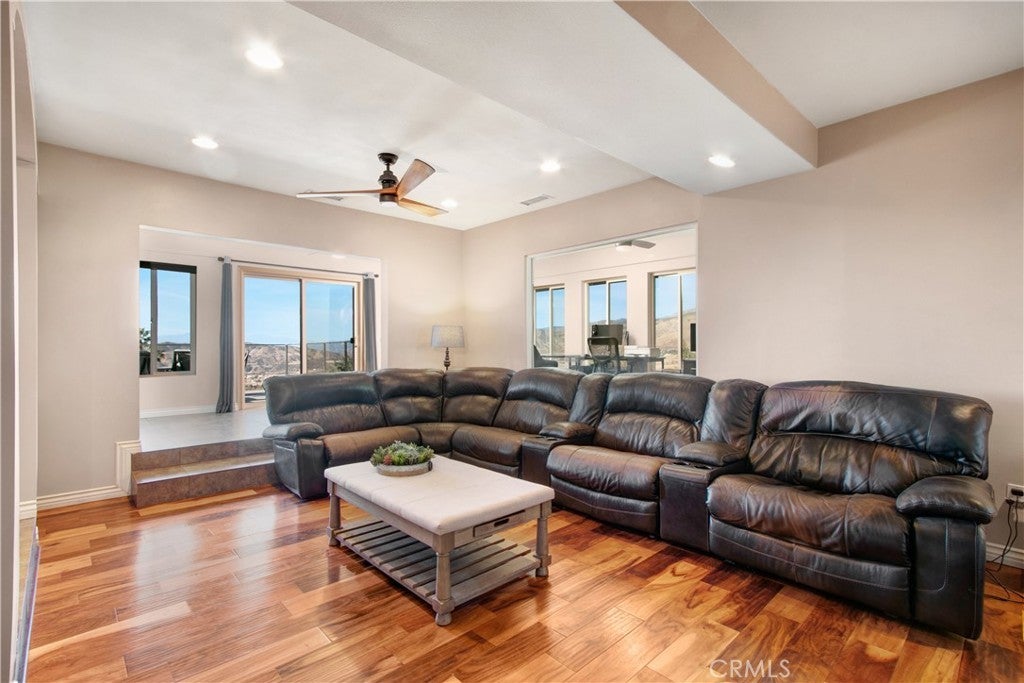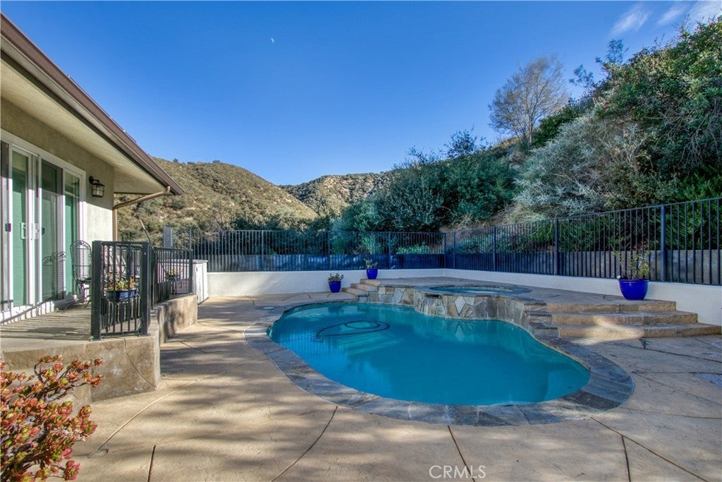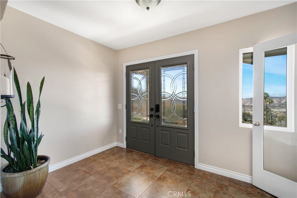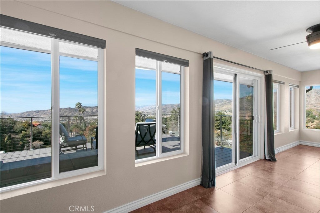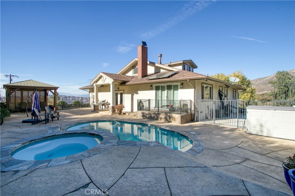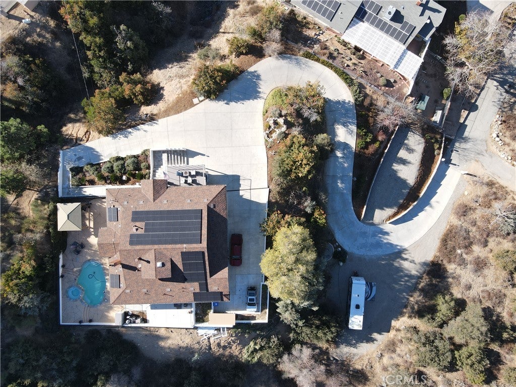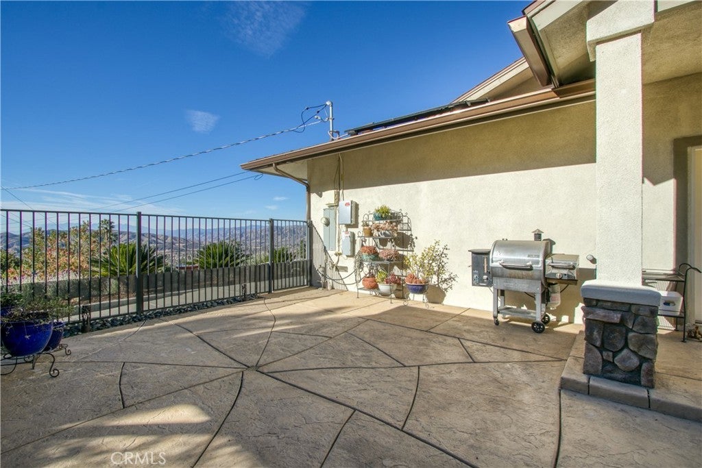 ENJOY MOUNTAIN VIBES WITHOUT THE MOUNTAIN DRIVE! Completely renovated in 2015, this Yucaipa hilltop property is designed for modern living, with one primary feature being a self-contained 400 sq ft studio apartment on the ground floor. Offering a private entrance, a kitchenette, and a full bathroom, this versatile space is the perfect solution for extended family, a home business, or a valuable source of rental income. The kitchenette is equipped with a dishwasher, garbage disposal, a large stainless steel sink, and space for a refrigerator. Ample countertop space allows for convenient use of an air fryer/oven and a stovetop burner. The remainder of the ground level includes the two-car garage with 180 sq ft of additional storage space, and a versatile bonus room perfect for a home theatre, wine room, or workout space. Level two, the main floor, features the front entry. There's a spacious kitchen with a large island, a cozy family room, a convenient half bath, a living room with a fireplace, a bonus space ideal for a home office with amazing views, and two primary bedrooms, each with an ensuite bathroom. The main level also has a deck, perfect for enjoying the panoramic views. The third level includes a landing, two generously sized storage closets, and a primary bedroom with an ensuite bathroom and walk-in closet. The fully landscaped property has a fenced area for relaxing by the pool and spa. For added convenience, 30-amp power and a sewer cleanout are available near the garage, providing the option of accommodating guests in an RV. Additionally, there are 46 solar panels installed, and a graded pad in the lower portion of the property offers numerous possibilities, including parking for boats or RVs. The property's RL 5 zoning offers flexible usage, with the lower area being suitable for horses, pigs, goats, and other animals. Recent improvements include a new electrical panel, landscape border walls, and graded gravel at the property entrance. You'll also find a trash bin enclosure, a concrete driveway extension with a ramp, and landscape walls in the front. The back of the home now features concrete paving. Inside, enjoy custom window coverings, power blinds in the primary suite near the pool, ceiling fans, and closet organizers throughout.