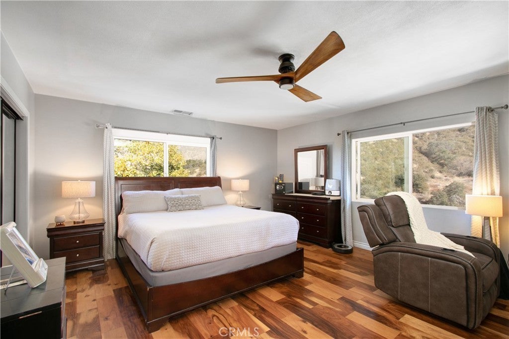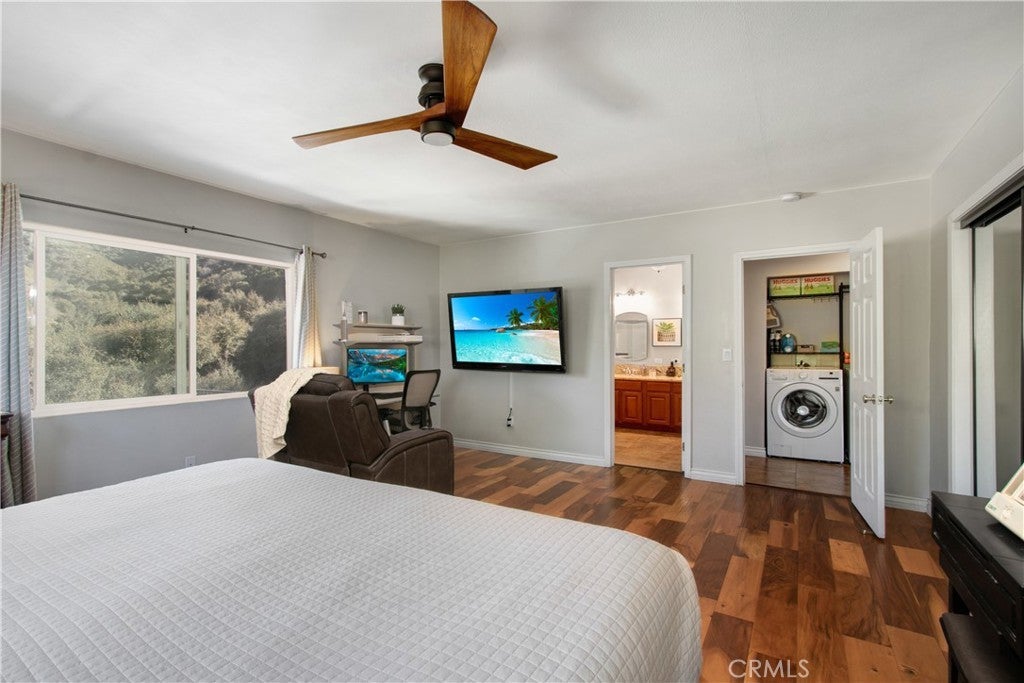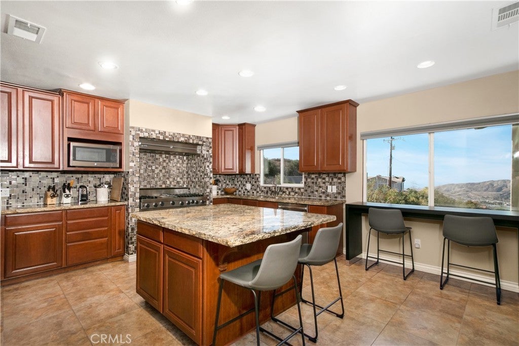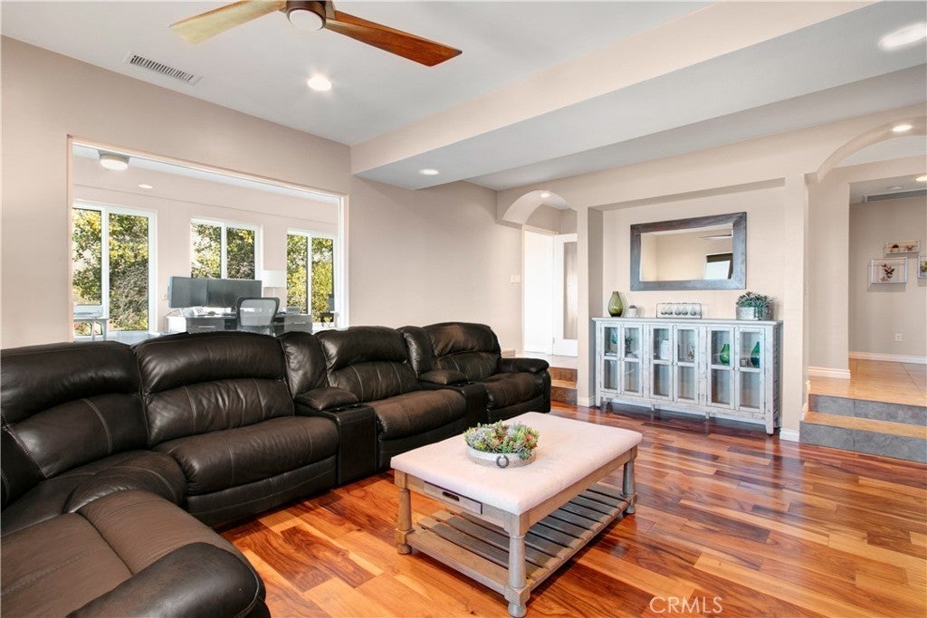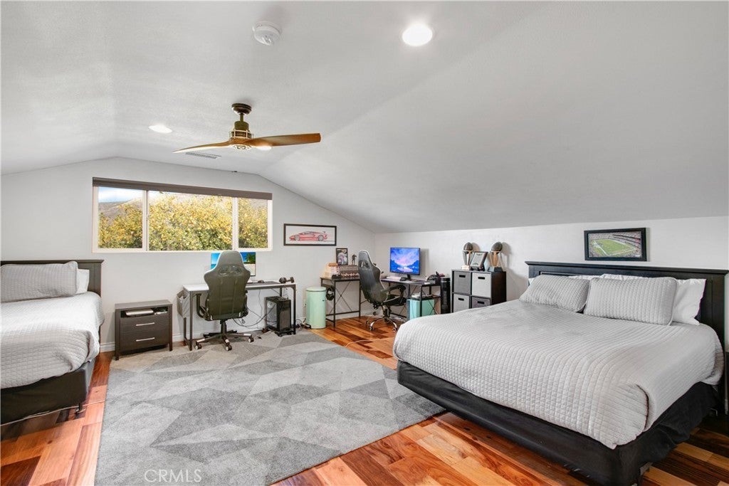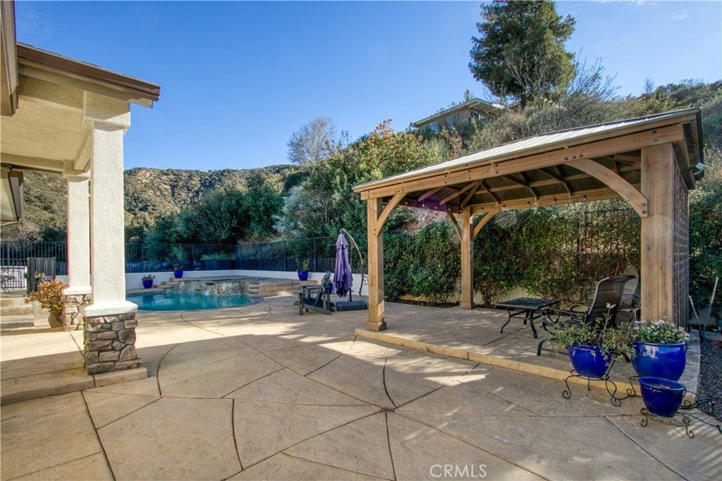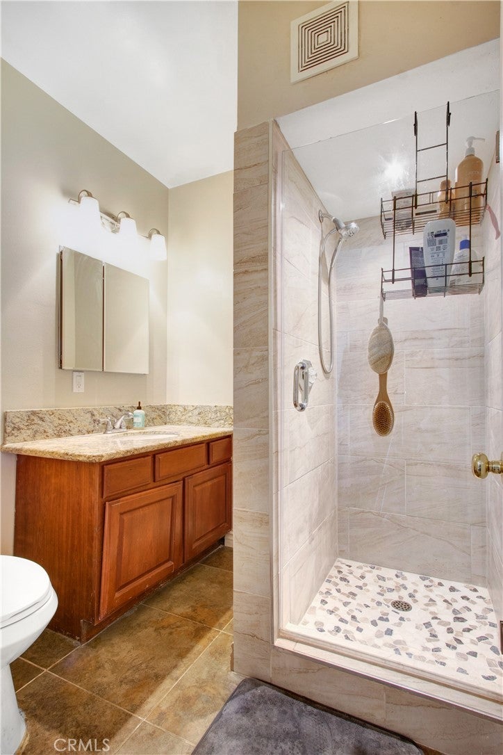 ENJOY MOUNTAIN VIBES WITHOUT THE MOUNTAIN DRIVE! Completely renovated in 2015, this Yucaipa hilltop property is designed for modern living, with one primary feature being a self-contained 400 sq ft studio apartment on the ground floor. Offering a private entrance, a kitchenette, and a full bathroom, this versatile space is the perfect solution for extended family, a home business, or a valuable source of rental income. The kitchenette is equipped with a dishwasher, garbage disposal, a large stainless steel sink, and space for a refrigerator. Ample countertop space allows for convenient use of an air fryer/oven and a stovetop burner. The remainder of the ground level includes the two-car garage with 180 sq ft of additional storage space, and a versatile bonus room perfect for a home theatre, wine room, or workout space. Level two, the main floor, features the front entry. There's a spacious kitchen with a large island, a cozy family room, a convenient half bath, a living room with a fireplace, a bonus space ideal for a home office with amazing views, and two primary bedrooms, each with an ensuite bathroom. The main level also has a deck, perfect for enjoying the panoramic views. The third level includes a landing, two generously sized storage closets, and a primary bedroom with an ensuite bathroom and walk-in closet. The fully landscaped property has a fenced area for relaxing by the pool and spa. For added convenience, 30-amp power and a sewer cleanout are available near the garage, providing the option of accommodating guests in an RV. Additionally, there are 46 solar panels installed, and a graded pad in the lower portion of the property offers numerous possibilities, including parking for boats or RVs. The property's RL 5 zoning offers flexible usage, with the lower area being suitable for horses, pigs, goats, and other animals. Recent improvements include a new electrical panel, landscape border walls, and graded gravel at the property entrance. You'll also find a trash bin enclosure, a concrete driveway extension with a ramp, and landscape walls in the front. The back of the home now features concrete paving. Inside, enjoy custom window coverings, power blinds in the primary suite near the pool, ceiling fans, and closet organizers throughout.