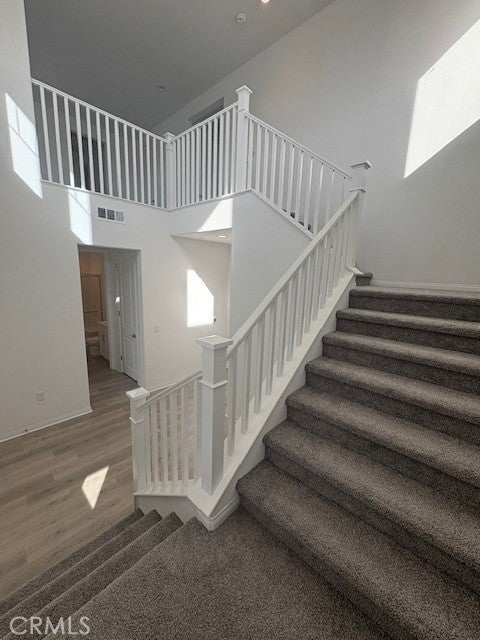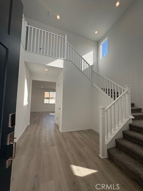 Welcome to the Presley floorplan here in Legacy at the Braverde masterplan in Menifee. It's the final phase and only a few homes remain! As you enter, a 2 story ceiling entry welcomes you. The main floor offers an expansive great room, a beautiful sunroom that lets the light in, a gourmet kitchen w/ white cabinets, quartz counters w/full tile backsplash, under cabinet lighting, walk-in pantry and an immense center island—perfect for entertaining and a cook's dream come true! The whole house has tall 8-foot doors, tons of recessed lighting and ceiling fan prewires in great room, loft and all bedrooms. Flooring includes wood laminate on the main level, 12 x 24 tile flooring in bathrooms & laundry room and upgraded carpet in hallways, stairs and all bedrooms. A convenient first floor bedroom and full bathroom w/walk in shower and a spacious 2-car + storage garage completes the first level of the home. This home also features an open stair railing leading up to the second level where you'll find a large loft and three inviting bedrooms, each with their own walk in closets and a luxurious owner's suite complete with a separate shower and soaking tub. This home includes owned Solar and is turnkey! Visit today!