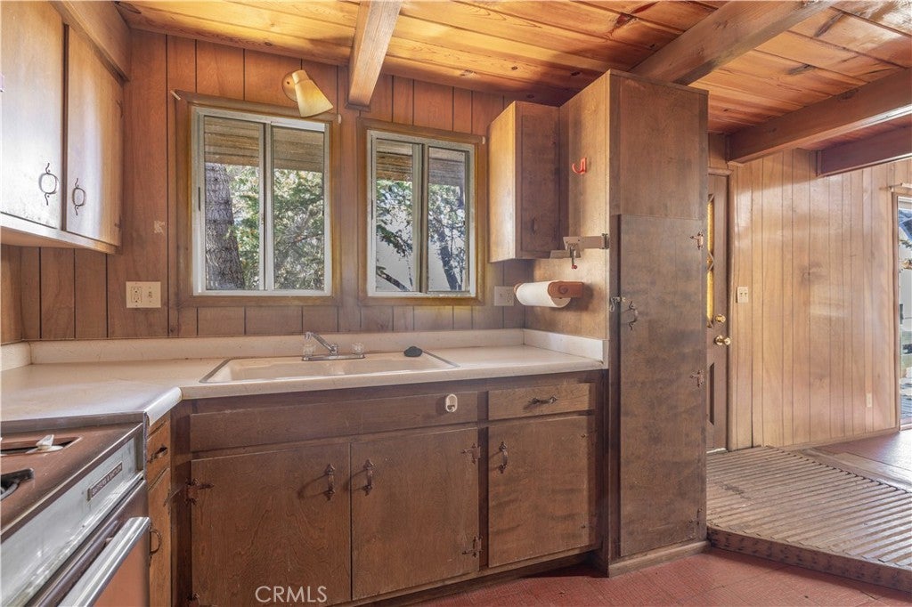 Nestled just steps away from Bear Mountain Ski Resort, this charming 2-bedroom, 1-bath A-frame cabin offers the ultimate mountain getaway. Featuring vaulted tongue-and-groove ceilings and an open-concept kitchen, living, and dining area, this cozy retreat is brimming with potential. Major improvements have already been completed, including foundation repairs, a new heater, and a fully replaced water main from the meter to the house with a new stop-and-waste valve—providing a solid head start for the next owner. The expansive lot offers ample room to expand or enhance the property, making it an excellent opportunity for rental income or personal use. With a few additional upgrades, this mountain gem could truly shine in one of Big Bear’s most sought-after locations.
