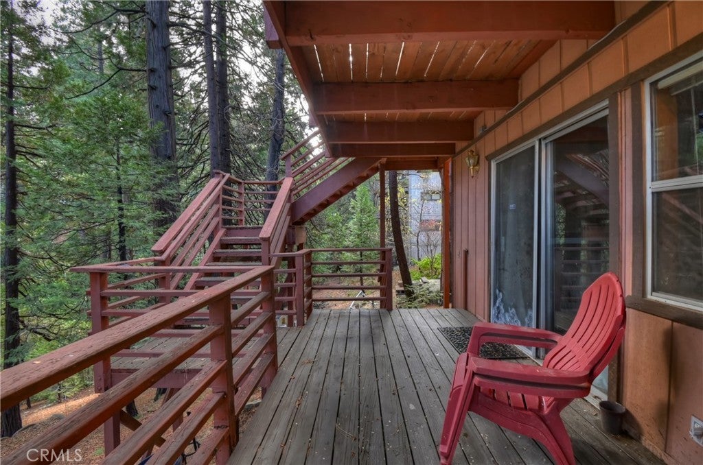 - Interior FeaturesHigh Ceilings, Living Room Deck Attached, Two Story Ceilings, Wood Product Walls, Bedroom on Main Level, Main Level Primary, Furnished