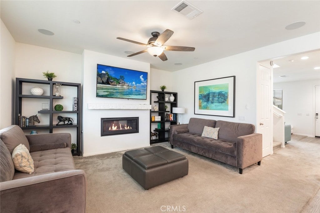 Welcome to 29081 Soraya, Lake Elsinore – Located in the Highly Sought-After Summerly Community! Step into this beautifully upgraded 4-bedroom, 3-bath home offering 2,263 sq ft of spacious living on a premium lot with no rear neighbors – giving you privacy and peace in a vibrant neighborhood. As you enter, you’re greeted by a versatile front sitting area perfect for a playroom, home office, or extra TV space. The open-concept layout flows effortlessly into the heart of the home — a light-filled family room featuring a custom built-in fireplace, seamlessly connected to the kitchen and dining area. The kitchen is a chef’s dream, showcasing granite countertops, white cabinets, stainless steel appliances, and plenty of prep space. Upgraded flooring throughout adds a touch of style and comfort. Step outside to your private backyard with a low-maintenance Alumawood patio cover, complete with multiple ceiling fans — perfect for relaxing or entertaining all year round. Additional features include leased solar for energy efficiency and smart long-term savings. This home truly has it all — space, upgrades, location, and comfort — all within the thriving Summerly community, close to parks, schools, shopping, and the Storm Stadium. Don’t miss your chance to own this exceptional home!