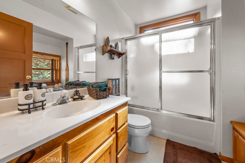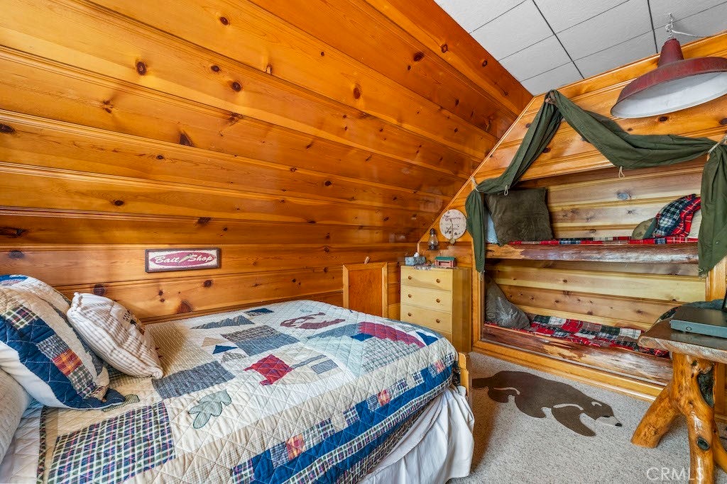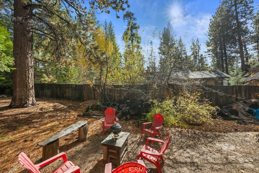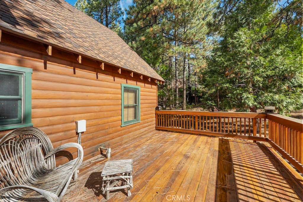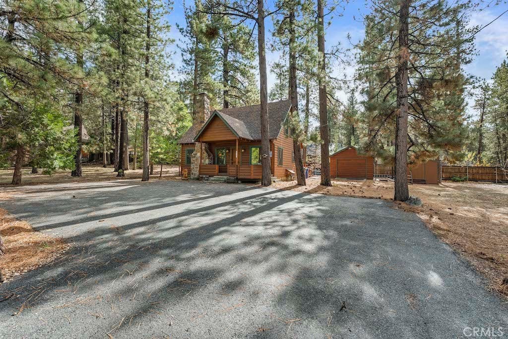 Introducing a charming 1,226 sq ft log cabin nestled in a serene, heavily treed area of Big Bear Lake! This inviting 3-bed, 2-bath retreat blends classic mountain character with rustic elegance. Warm Knotty Pine accents and a striking native rock fireplace create a cozy lodge feel, while the country-style kitchen—complete with a generous pantry—offers great functionality for everyday living or weekend escapes. A separate laundry area adds convenience. The well-designed layout includes a main-level bedroom, with additional bedrooms upstairs for added privacy. Step outside to a spacious back deck, perfect for relaxing among the pines or entertaining guests. Situated on a 9,000 sq ft lot, the property provides a peaceful, wooded setting, and the detached garage offers excellent storage for mountain toys! Located close to the lake and just a short drive to the Village, restaurants, shops, and ski resorts, this home is ideally positioned for year-round enjoyment. A wonderful opportunity to own an authentic Big Bear retreat in one of the area’s most desirable neighborhoods.