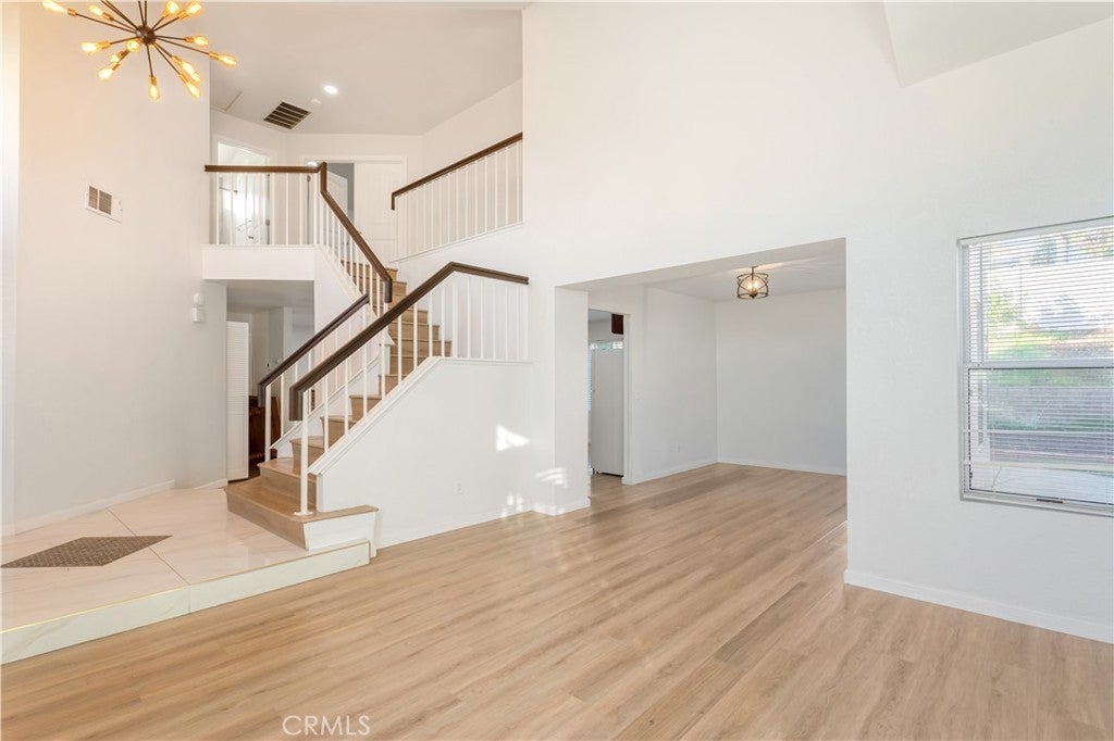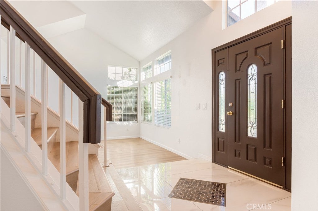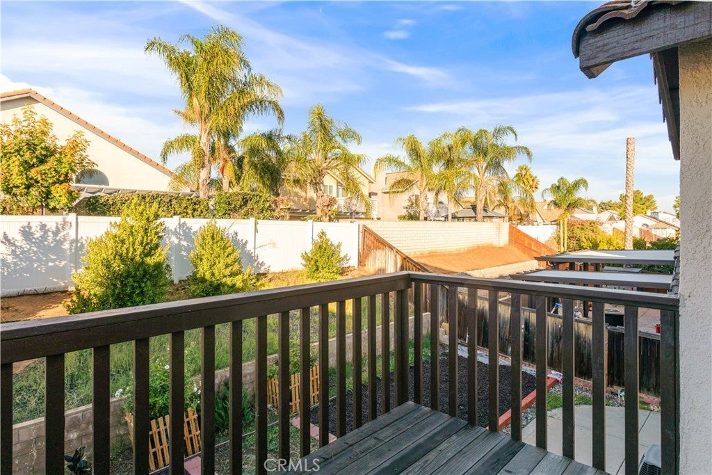 TURNKEY Moreno Valley Home! Beautifully updated 4-bedroom, 2.5-bath home located in a quiet, well-established neighborhood with NO HOA. The entry features elegant marble flooring leading into a bright, open layout with high ceilings and two spacious living areas, including a family room with a cozy fireplace. The upgraded kitchen offers ample counter space, stainless steel appliances, a five-burner gas stove, and abundant storage. Laundry is conveniently located inside, just off the garage entry, along with a downstairs powder room for added convenience. Luxury vinyl plank flooring runs throughout. All bedrooms are upstairs, including the roomy primary suite with a private balcony, upgraded dual sinks, and a large walk-in closet. Recent upgrades include the roof, exterior paint, bathrooms, flooring, and automatic garage door opener. The attached two-car garage provides direct access and built-in storage. Close to schools, shopping, dining, and transportation. Move-in ready and shows beautifully—don’t miss this one!