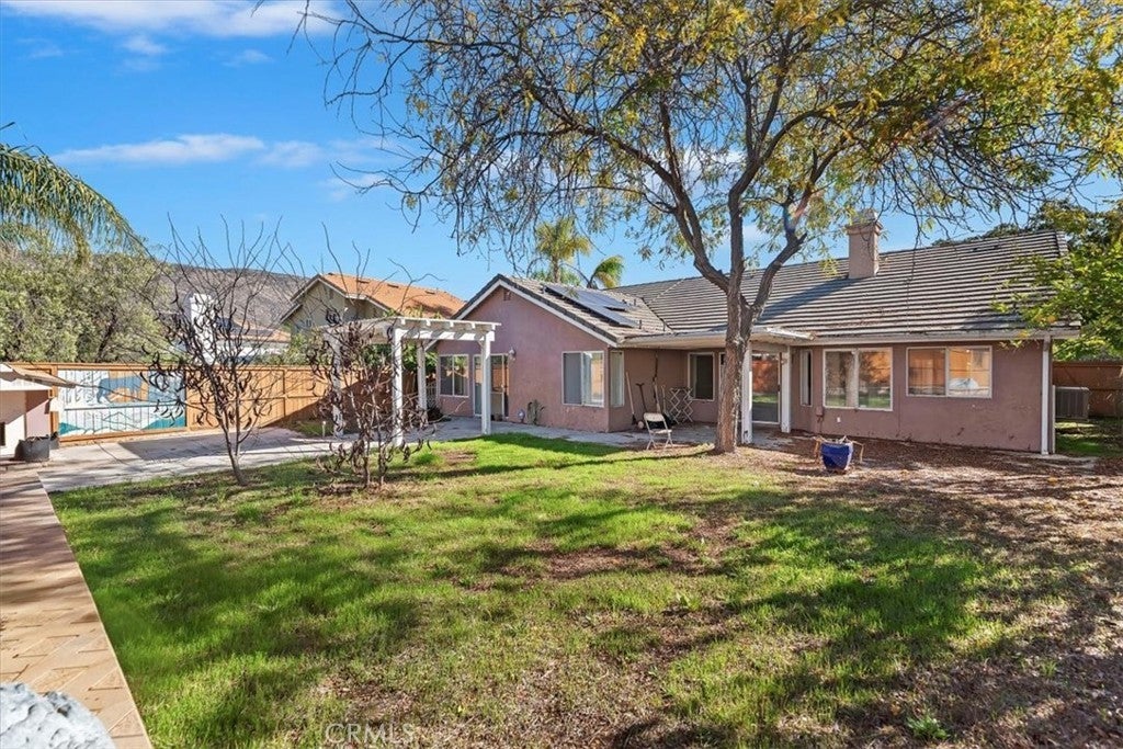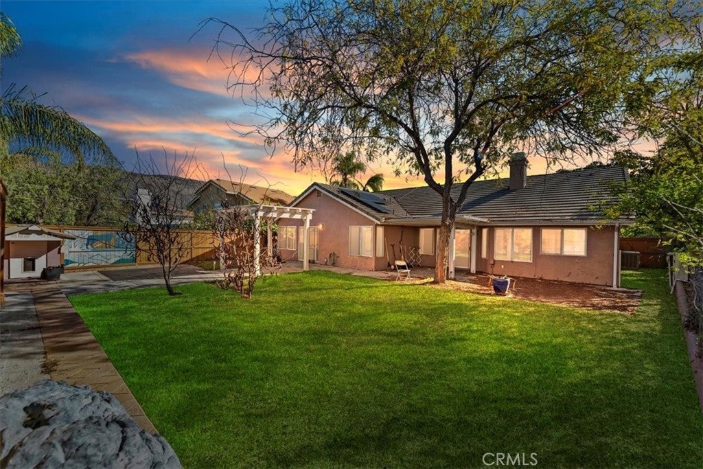 Beautiful single-story Hidden Springs home with paid-off solar and battery backup! This spacious 4-bedroom, 2-bath property offers a bright, open layout with high ceilings, beautiful tile flooring, and a cozy fireplace in the family room. The large primary suite features a generous bathroom with great storage. Additional bedrooms are perfect for family, guests, or office use. The home sits on a sizable 8,700+ sq. ft. lot with a private backyard ideal for relaxing or entertaining. Enjoy the convenience of an attached 3-car garage, central heating, and cooling. Located in one of Moreno Valley’s most desirable neighborhoods, this home is surrounded by scenic walking trails, mountain views, and peaceful streets. No HOA. Minutes from local universities, shopping, parks, and commuter routes. A rare opportunity to own a beautifully maintained single-story home with modern energy features in Hidden Springs!