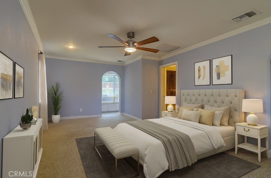 Located at the end of a peaceful cul-de-sac, this charming 3-bedroom, 2-bath home offers comfort, character, and exceptional convenience—just minutes to the freeway and less than two blocks from the prestigious University of Redlands. Situated on an expansive 9,147 sq. ft. lot, the property provides ample street parking along the front and side street, ideal for hosting gatherings and family events. A beautiful set of wood entry doors with beveled glass welcomes you into a warm, inviting foyer enhanced by recessed lighting and tasteful sconces. The spacious living room is filled with natural light from a large bay window with wind-out panels and shutters, offering a serene view of the freshly installed low-maintenance landscape. A cozy fireplace is framed by charming built-in cabinets and storage nooks, maximizing function and style. The open kitchen delivers a delightful culinary experience with well-crafted cabinetry, pull-out drawers, a wine rack, farmhouse sink, pantry, lazy susan, warming drawer, and a skylight that brightens the entire space. Adorable french doors lead you out to a generous covered patio—perfect for dining, lounging, or creating an enchanting evening setup. Enjoy mountain views and a private atmosphere thanks to the beautiful block wall that surrounds the backyard. The property features its own mini orchard with mature lemon, lime, grapefruit, orange, and pomegranate trees—ideal for anyone who loves fresh fruit or gardening. Both bedrooms offer full mirrored closets, while the spacious primary suite includes granite counters, a soaking tub, vanity, walk-in closet, recessed lighting, and French doors that open directly onto the patio. Additional features include RV parking with room to expand the driveway, a whole house fan, dimmable ceiling fans throughout, a 1-year-old A/C condenser and evaporator coil that deliver ice-cold air, newly installed drip-irrigation landscape, and a high-quality 30-year GAF roof still under warranty. Whether you’re looking for extra parking, outdoor entertaining space, or a peaceful retreat with modern comfort, this home offers endless possibilities. Virtual staging used in selected photos. Property is unfurnished. Schedule your showing today!