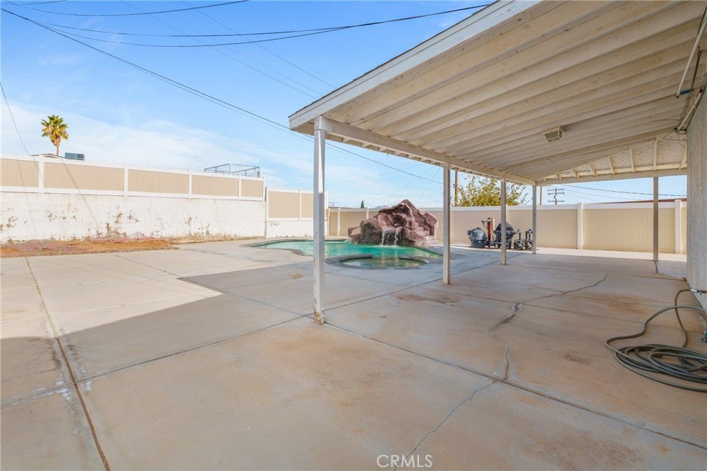 Welcome to this versatile 3-bedroom, 2-bath Barstow pool home featuring multiple living areas and flexible spaces that can easily serve as a 4th or even 5th bedroom. This spacious floor plan includes a living room, family room, formal dining room, and a dedicated office, offering plenty of room to spread out, work, relax, and entertain. The upgraded kitchen features modern finishes and comes with a refrigerator included. A new roof installed in 2021 provides added peace of mind. Step outside to a large covered patio overlooking a sparkling in-ground pool with a waterfall, perfect for summer enjoyment. The property is fully gated with vinyl fencing, providing privacy and security, plus ample parking for vehicles, toys, and guests. This home offers space, style, and the desert oasis you’ve been searching for!