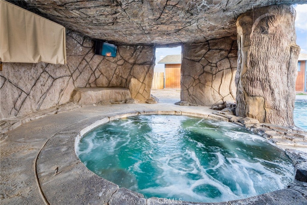 Welcome to your Hesperia retreat—an upgraded 3-bedroom, 2-bath pool home perfectly set on a spacious .40-acre lot with standout features inside and out. This property combines comfort, entertainment, and functionality, offering something for everyone. Step inside to an inviting floor plan with ceiling fans throughout, a whole house fan, and an upgraded kitchen featuring granite countertops. The primary suite is a true escape with a jetted jacuzzi tub, dual showerheads, and beautiful finishes that elevate your everyday living. Outside is where this home truly shines. Enjoy a stunning pool and spa, complete with a large grotto/cave fully equipped with electricity, TV outlets, gas firepits, and a custom waterfall, all voice-controlled by Alexa for the ultimate backyard experience. For those who need space for projects or storage, the property includes an impressive workshop with front and rear drive-through roll-up doors, 220 power, water, perimeter lighting, and a half bath—ideal for hobbies, business, or additional storage. There is also a separate shed with electricity, plus RV parking and a fully fenced and cross-fenced yard for added versatility. Additional highlights include solar for energy savings, a new roof installed in 2022, and a 2-car garage. With a blend of luxury, practicality, and smart-home features, this Hesperia home is ready to impress. Don’t miss your chance to tour this one-of-a-kind property!