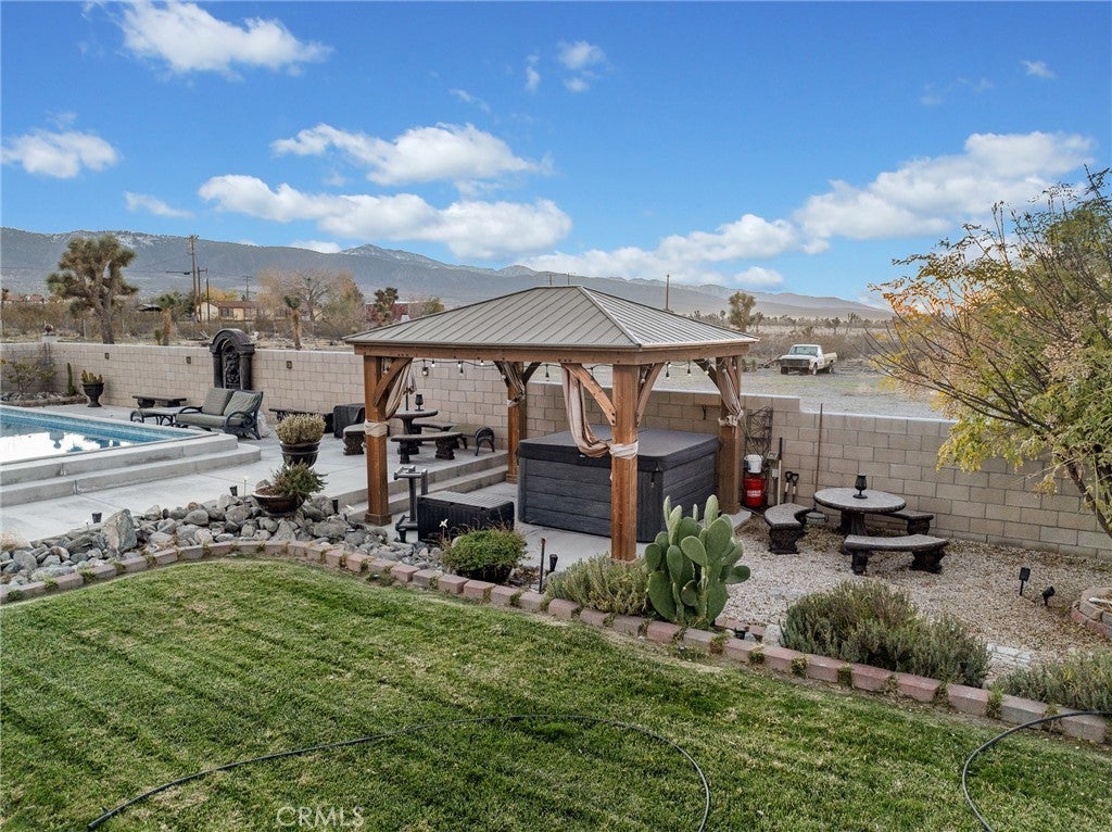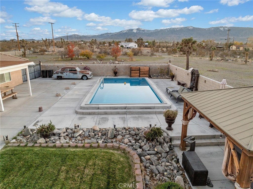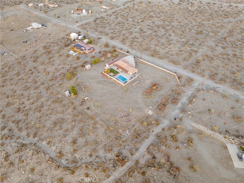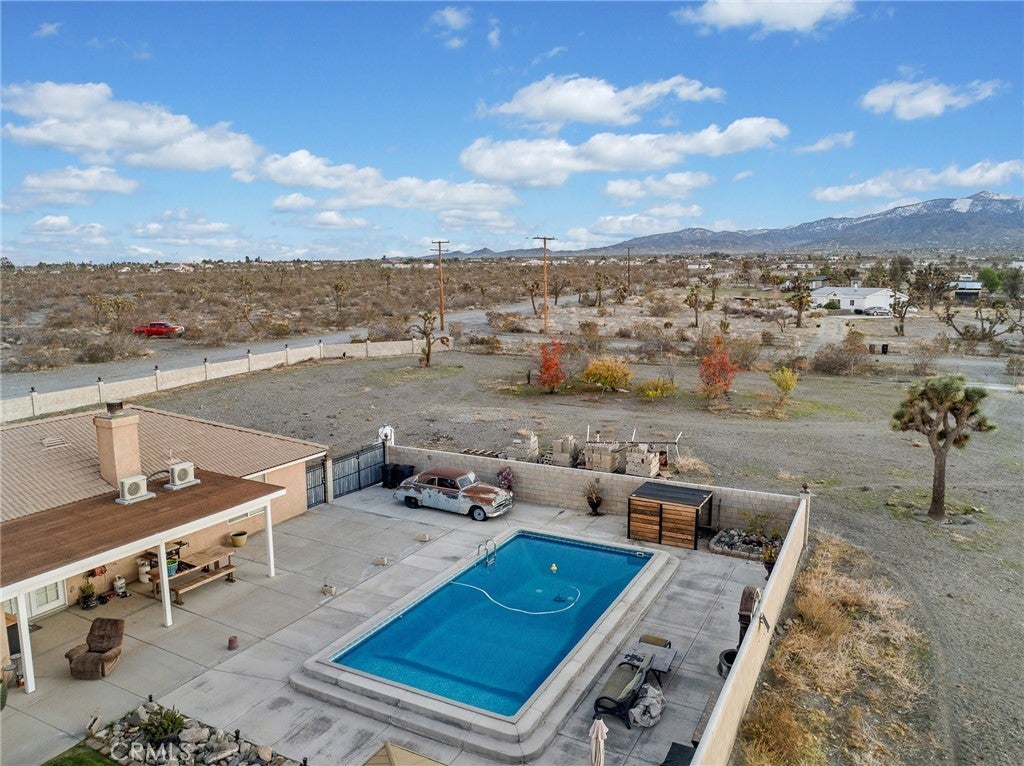 Pride of ownership shines through on this beautiful desert home. Discover the perfect blend of space, comfort, and modern upgrades in this beautifully updated 4-bed, 2-bath home on a sprawling 2-acre lot, complete with an additional room easily convertible into a 5th bedroom. Set behind an electric gate with a block wall, this property offers exceptional privacy and room to grow. Step inside to an inviting open floor plan featuring a remodeled kitchen with a farmhouse sink, built-in wine fridge, LED track lighting, and wood shutters throughout. The home is equipped with practical upgrades including a tankless water heater, soft water system, three AC mini-splits, and a wood-burning stove. Enjoy resort-style living with a sparkling saltwater pool and spa, plus French doors opening to expansive outdoor space perfect for entertaining. Additional highlights include a renovated septic system, carport with an automatic garage door, extra side gate for easy access, and plenty of room for RVs, toys, or future additions. This property offers the ideal combination of modern convenience, rural space, and move-in ready comfort—an exceptional opportunity you won’t want to miss.