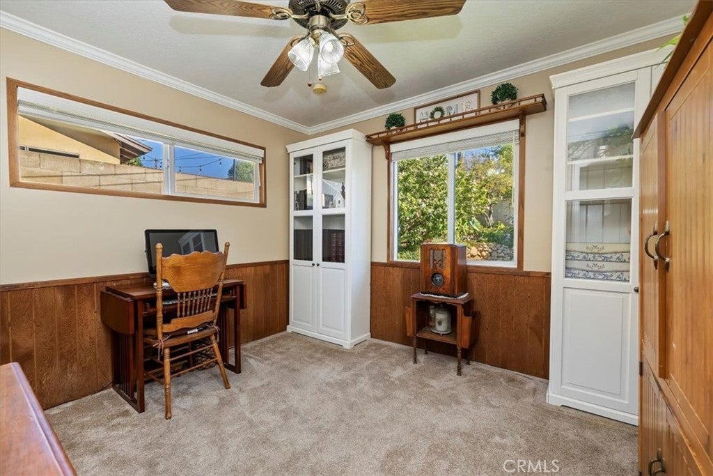 • Interior FeaturesCrown Molding, Pantry, All Bedrooms Down, Bedroom on Main Level, Workshop, Block Walls, Ceiling Fan(s), Eat-in Kitchen, Unfurnished