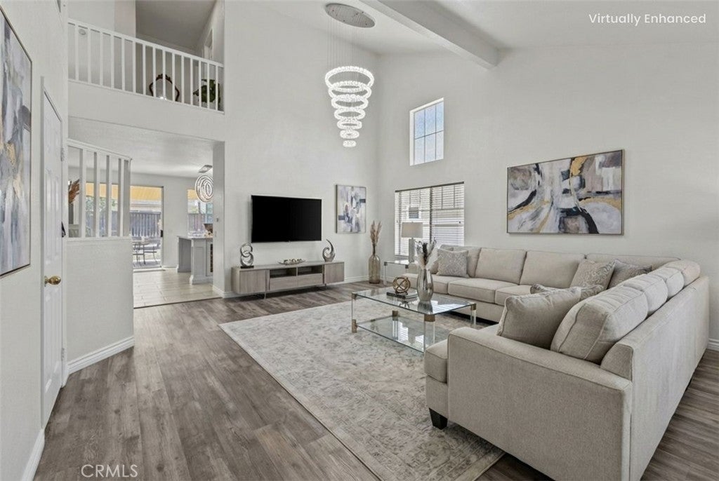 4 Beds | 3 Baths | Large Bonus Room (Optional 5th Bedroom) | 2,794 Sq Ft | 4-Car Garage | Solar | Dedicated Laundry Room | Remodeled Front Yard | Electric Fireplace | Low HOA | High Ceilings Welcome to Horsethief Canyon Ranch. This 4-bedroom, 3-bath home with a large bonus room provides 2,794 sq ft of well-designed living space on a 6,969 sq ft lot. The living area features soaring ceilings, a clerestory window, and a chandelier that enhances the natural light. The functional layout includes a bedroom and bathroom on the main level. The remodeled bathroom showcases a floating vanity, LED mirror, marble accents, and a clean, modern walk-in shower. The redesigned front yard showcases low-maintenance turf and modern design accents, while the backyard offers the flexibility to add a shade sail for enhanced outdoor comfort. The formal dining room highlights an upgraded split-face tile fireplace with a color-changing insert. The open kitchen includes marble countertops, a cabinet-style island, and generous space for everyday use. Upstairs, the primary suite includes a walk-in closet, a chandelier, and a full bath with a spacious double-sink vanity. The community includes pools, a gym, tennis courts, sports fields, parks, and scenic hiking trails.