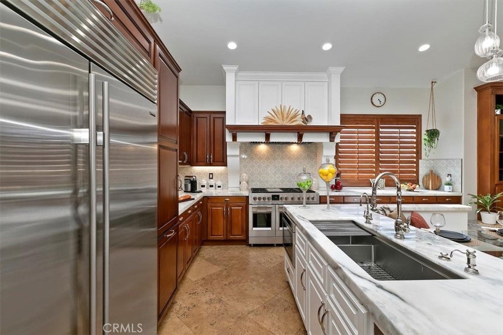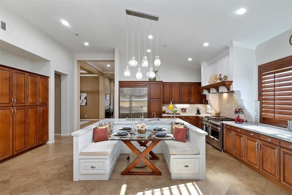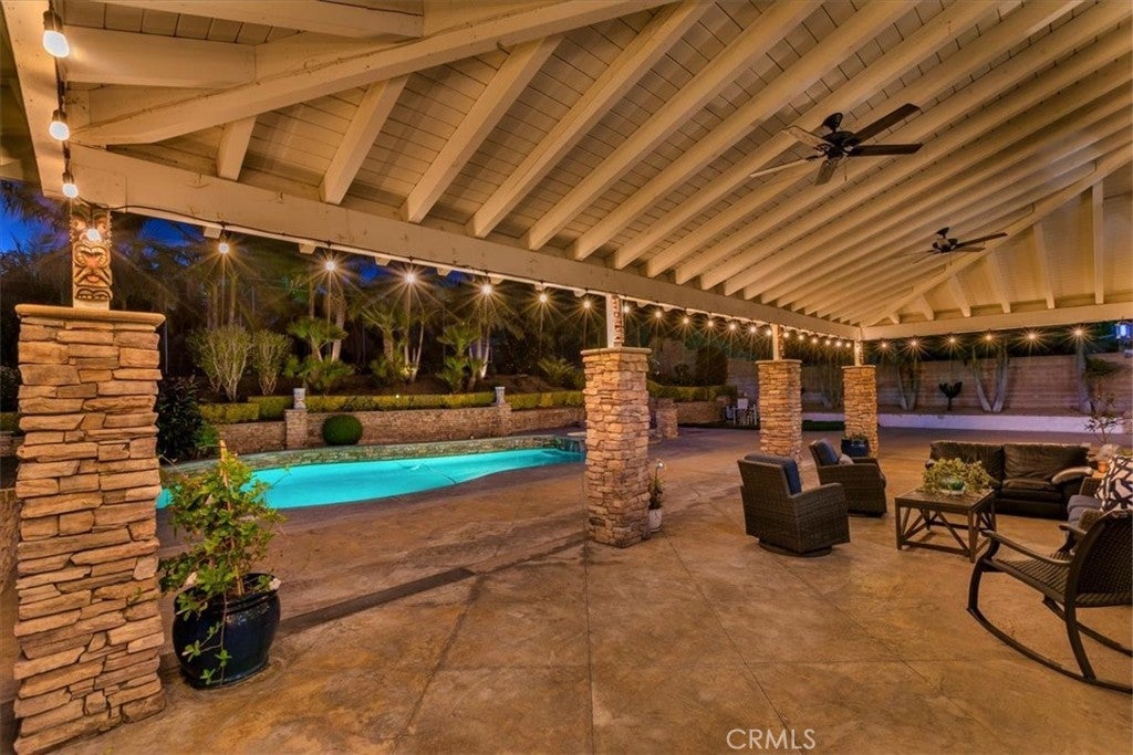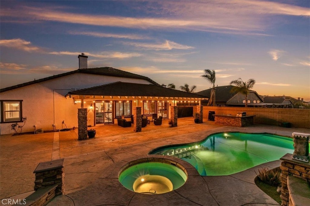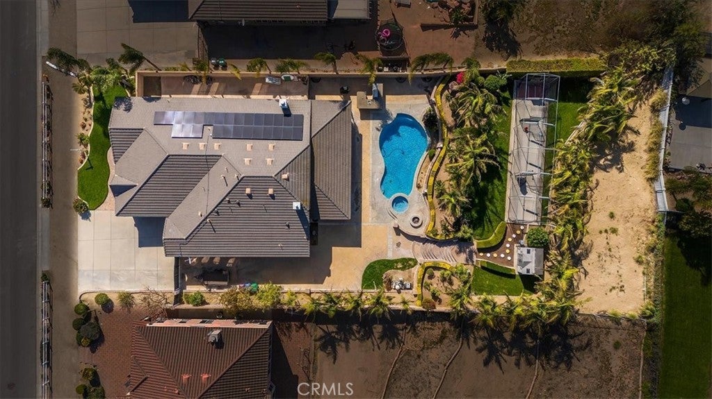 MAGNIFICENT Highly Sought After Norco Hills Single Story Home with RV PARKING, PAID OFF SOLAR, POOL & SPA . Spectacular home with elegant & high end upgrades that you will fall in love with. Beautiful curb appeal with lush landscaping. The Grand entry leads you to high 20 foot ceilings as you walk into this expansive home. This home features an office/bedroom with a Jack & Jill bathroom separated from the rest of the bedrooms. If you like to entertain you have an oversized formal dining room & an additional family room/pool table/gym area. Love to cook? Kitchen has been completely renovated with high end CUSTOM FEATURES. The custom island has a built-in kitchen table and seating area that overlooks the family room area. GOURMET KITCHEN features SUB-ZERO built in refrigerator, beautiful custom cabinets INCLUDING OVER THE RANGE, built in microwave, dishwasher and 48 inch stainless steel Fulgor Milano range that includes 6 burners and a griddle with a double oven. The quartzite countertops and the custom tile backsplash add to the elegance of this home. There are tons of cabinets with extra storage including a Walk-in Pantry . Seller has installed all newer engineered wood floors & beautiful travertine tile. The Primary bedroom has high ceilings, and a gas fireplace for ambiance and warmth. Oversized walk-in closet allows a lot of space for your wardrobe. The Primary bathroom has been completely remodeled & features dual sinks, custom quartzite countertops, large jetted tub. Sliding glass doors lead you to your oasis backyard to the view of pool and a nice breeze. There are plantation shutters through-out adding character & charm to this home. Indoor laundry room with custom cabinets and a sink. As you step outside you will fall in love in an instant. The breathtaking backyard has a gorgeous pool & spa that includes a Baja shelf perfect for soaking in. Beautiful stamped concrete all around that includes drains. The large attached patio is approx. 20 feet tall and is a perfect place to entertain guests. There is a built-in BBQ area making outdoor gatherings a breeze. As you walk up the elegant staircase to the upper portion, you will find the beautifully landscaped area large enough for many uses and animals. Located just minutes from the Hidden Valley Golf course, Pumpkin Rock Hiking trail & Ingalls Equestrian center. Paid off solar has 20 panels including a Tesla power pack, newer exterior paint. Plenty of RV Parking
