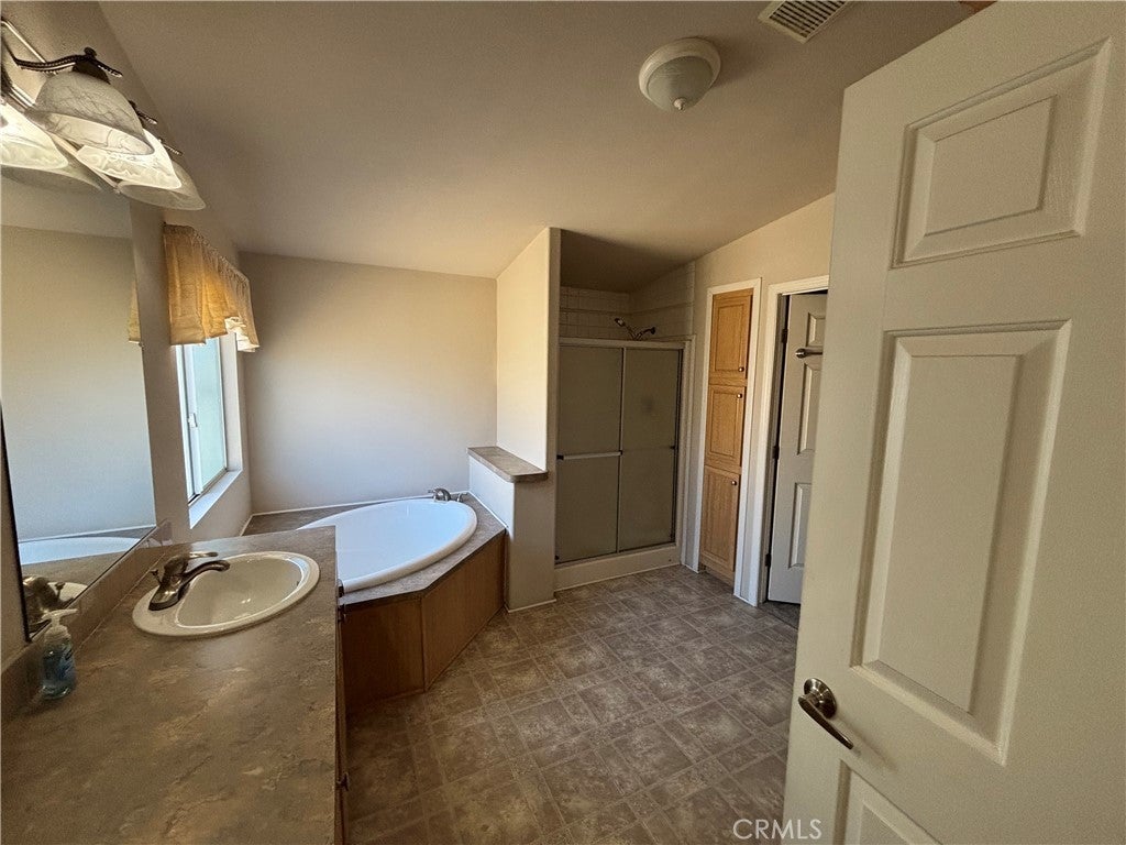 Beautifully cared for 3 bedroom, 2 bath manufactured home located in the highly desirable 55+ Mountain Springs community. This spacious 1,634 sq. ft. home offers an open and inviting floorplan with a large living area, upgraded fireplace, New carpet in master suite, New full interior paint throughout entire home and a bright kitchen perfect for everyday living and entertaining. A bonus enclosed patio room expands your living space and includes a relaxing hot tub — perfect for unwinding year-round. The property features a fully fenced yard with fruit trees, ideal for gardening or simply enjoying the outdoors. This home also includes a 2-car attached garage and a large cement driveway, providing ample parking. Mountain Springs is a well-maintained 55+ community offering peaceful surroundings, sports courts, swimming pool and convenient access to local amenities such as shopping, dining, entertainment and doctors. Enjoy the fresh air, scenic views and just a short drive to outlet stores and Palm springs. Don’t miss this beautifully cared-for home with upgrades throughout — move-in ready and waiting for its next owner.