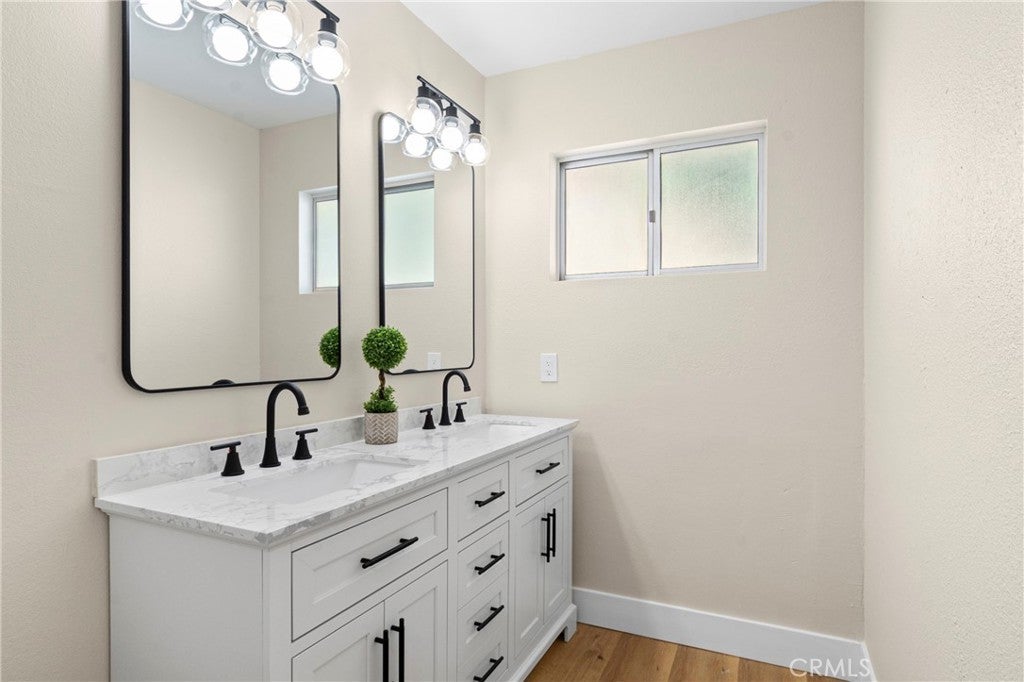 Beautifully updated home in the highly desired Northpark neighborhood! This move in ready 4 bedroom, 2 bathroom home boasts brand new plank flooring throughout the main living areas, brand new carpet in the bedrooms, and fresh paint inside and out. Both bathrooms feature new dual sink vanities, light fixtures, mirrors, and toilets, giving the home a clean, modern feel from top to bottom. The spacious, open floor plan includes a large family room and an oversized living room with built-in shelving—perfect for gatherings or creating separate living spaces. The large kitchen offers granite countertops and a large walk-in pantry. Additional upgrades include new recessed lighting, new interior doors, and ceiling fans in every bedroom. You’ll also love the large attic with convenient pull-down stairs and the huge bonus of paid-off solar, keeping energy costs low. Step outside to a private backyard, great for relaxing or entertaining. All located close to shopping, schools, freeways, and Cal State University San Bernardino. This Northpark gem checks all the boxes, you won't want to miss out!