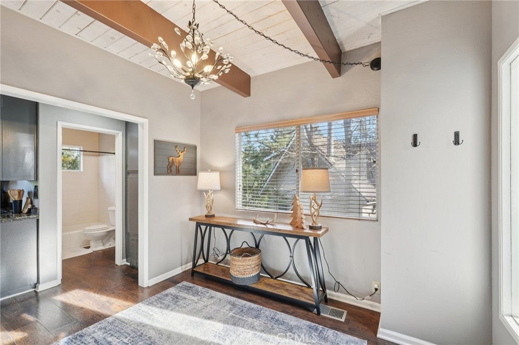 - Interior FeaturesBeamed Ceilings, Breakfast Bar, Granite Counters, Open Floorplan, Recessed Lighting, Entrance Foyer, Primary Suite