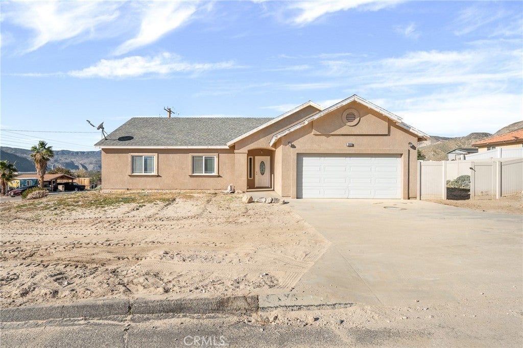 Welcome to this beautifully maintained 3 bedroom, 2 bath home offering 1720 sq ft of comfortable living space. The spacious living room seamlessly connects to the kitchen, creating an open and inviting layout perfect for everyday living and entertaining. The kitchen is highlighted with granite counter tops, a generous walk-in pantry, and ample workspace for cooking and hosting. Thoughtful upgrades include elegant crown molding and baseboards throughout with a cozy fireplace in living room, adding a refined touch to the home. Ceiling fans are installed in every bedroom for added comfort. The house features carpet in two bedrooms, while the primary bedroom and rest of the house showcase nice vinyl plank flooring, creating a modern and cohesive look. A separate laundry room adds everyday convenience. Step outside to a yard ready for your creative landscaping ideas- an ideal blank canvas to design your own outdoor retreat with the breathtaking mountain views. This functional floor plan and well-appointed finishes, is move-in ready and designed to fit a variety of lifestyles. Make this your home today!
