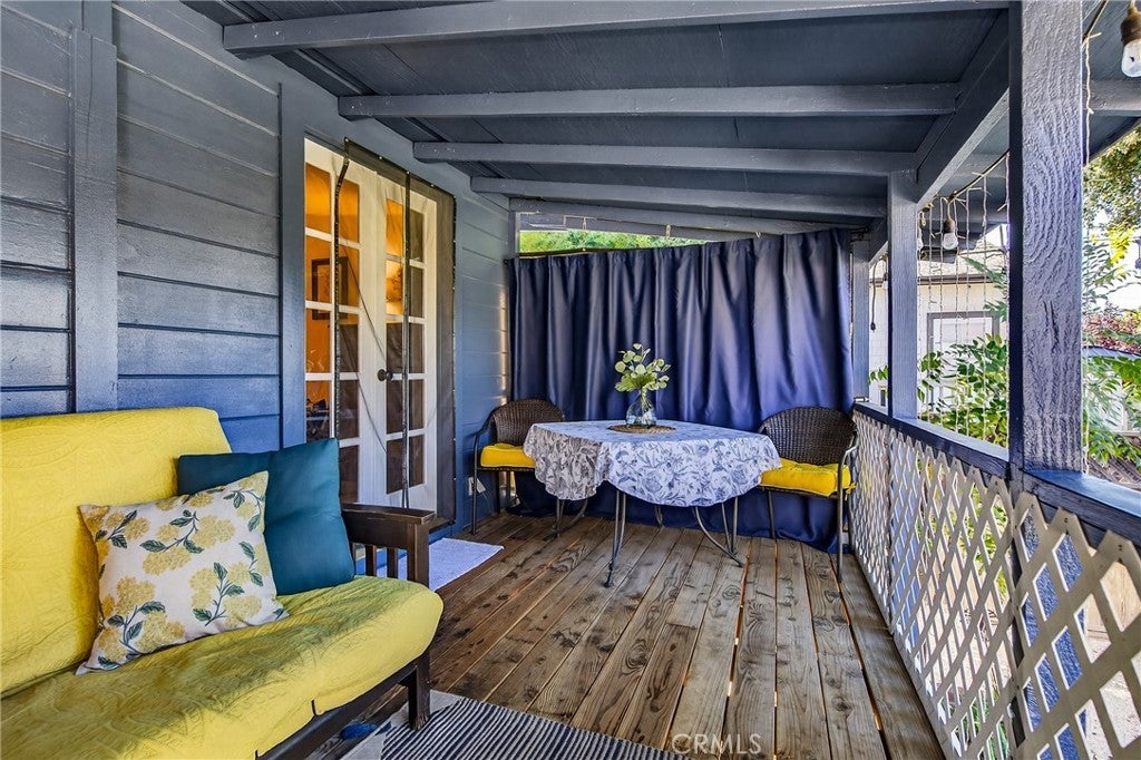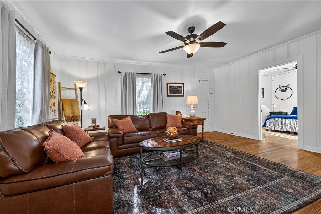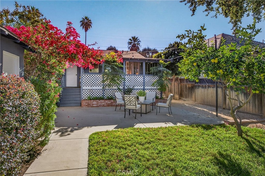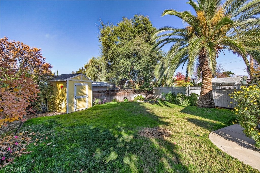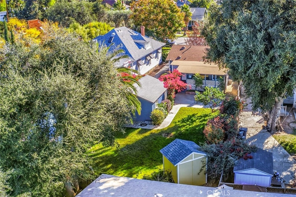 VOILA! Nestled in the heart of highly desirable South Redlands, this delightful 1940 SINGLE STORY BUNGALOW offers timeless charm in an unbeatable location. ONLY ONE BLOCK TO THE OLIVE MARKET AND A FEW BLOCKS TO THE REDLANDS BOWL, SMILEY LIBRARY, DOWNTOWN RESTAURANTS AND SHOPPING, this home delivers classic character with everyday convenience. Warm HARDWOOD FLOORS flow through a light-filled living room and into a formal dining area ideal for entertaining. The kitchen features a cozy breakfast nook and connects to a FLEXIBLE BONUS SPACE—perfect for a pantry, hobby area, or storage—which leads to a generously sized laundry room with ROOM FOR A DESK OR HOME OFFICE SETUP. The spacious primary bedroom opens directly to a covered porch with an outdoor dining space overlooking the LUSH AND BEAUTIFUL BACK YARD. . This porch has two entrances from the home and offers a very nice Vibe and place to relax. A second patio offers additional room to host guests. Enjoy year-round comfort with central heating and air conditioning, along with a charming yellow storage shed, a TWO-CAR GARAGE, and an extended driveway with ample parking. Full of warmth, character, and location appeal, this South Redlands gem is a rare opportunity—don’t miss your chance to call it home. (CHECK OUT THE VIDEO).