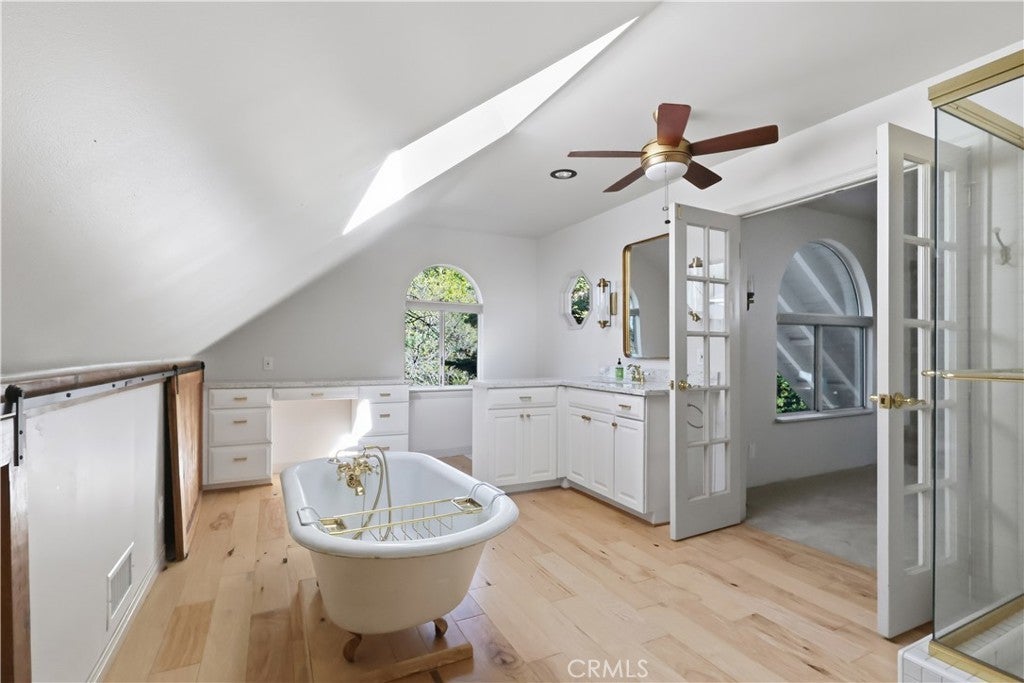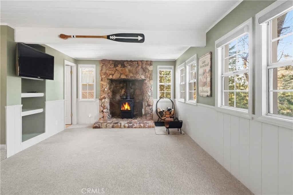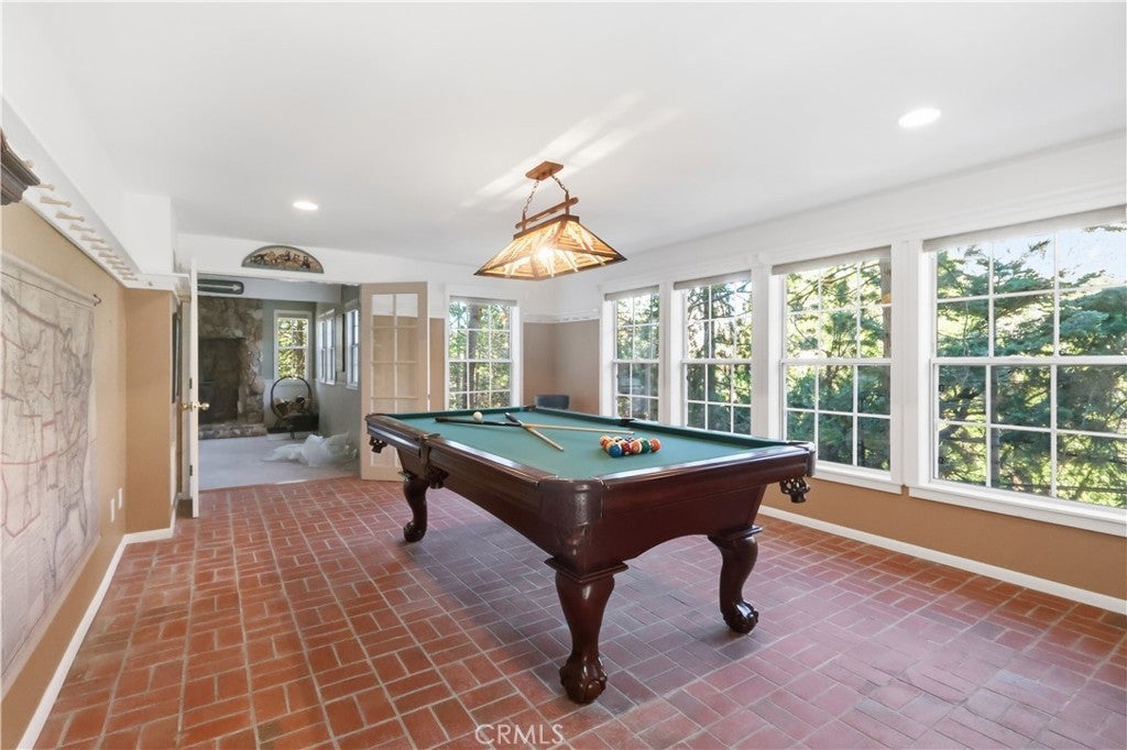 174 Golf Course Road | Lake Arrowhead Set in one of Lake Arrowhead’s most sought-after neighborhoods, this four-bedroom, level-entry home offers a beautiful blend of comfort, charm, and elevated mountain living—just moments from the Lake Arrowhead Country Club and a short drive to the lake. A welcoming approach with tranquil water features sets a serene tone upon arrival. Inside, the main level opens to a light-filled living room anchored by a striking rock fireplace, creating an inviting gathering space. Warm wood floors flow into a country-style kitchen featuring stainless steel appliances, quartz countertops, and classic cabinetry, ideal for everyday living and entertaining. Three bedrooms are conveniently located on the main level. Downstairs, enjoy a spacious den with a wet bar and wood-burning stove, perfect for relaxed evenings or hosting guests. An adjacent bonus game room, complete with a pool table, adds versatility and fun. The home’s crown jewel is the private upstairs primary retreat, featuring an exceptional bonus area enhanced by skylights, flooding the space with natural light—ideal for a sitting room, office, or yoga studio. A cozy fireplace creates warmth and ambiance, while the spa-inspired bathroom with a charming clawfoot tub offers a peaceful sanctuary. Step outside to enjoy beautiful decks off the back of the home and a dedicated patio, thoughtfully designed for outdoor entertaining and mountain relaxation. A backup generator provides added peace of mind and year-round comfort. With level entry, abundant natural light, inviting indoor-outdoor living spaces, and close proximity to golf, lake, and village amenities, this home perfectly captures the Lake Arrowhead lifestyle.