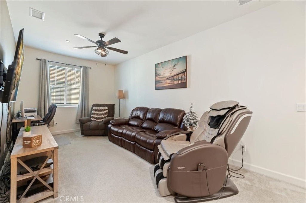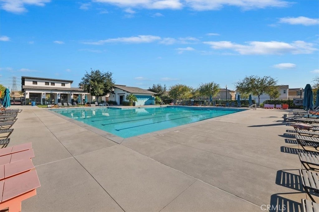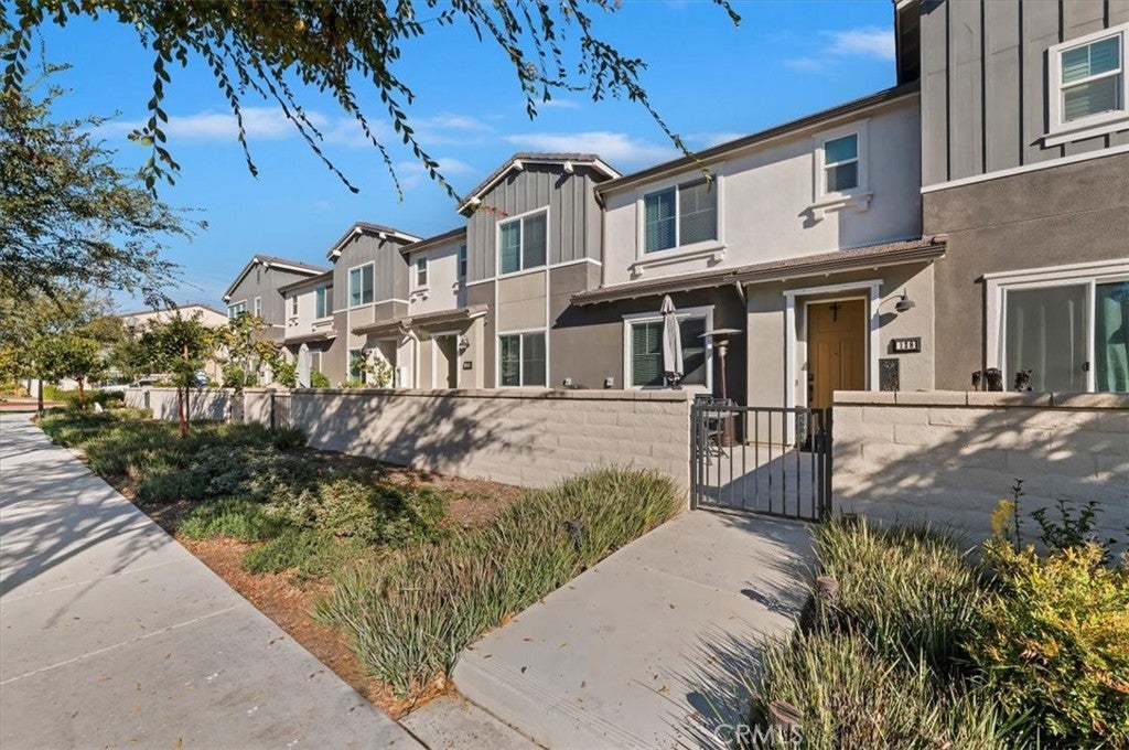 This charming 2-bedroom, 2.5-bath condo with a spacious loft is located in Canvas Park within the highly desirable New Haven community of Ontario Ranch. New Haven offers exceptional resort-style amenities, including five parks, five pools, and a dedicated dog park. Ideally situated on a tree-lined street, this home boasts one of the largest front patios in the community and is just steps from the pool, park, and community center. Inside, the home features an open-concept kitchen with granite countertops, ample white cabinetry, and custom hardware. The kitchen flows seamlessly into the living room, creating an inviting and functional space ideal for both everyday living and entertaining. The large primary suite comfortably accommodates generous furniture and includes a spacious walk-in closet, providing a peaceful and relaxing retreat. The versatile loft offers additional living space and can easily be converted into a third bedroom if desired. Upstairs laundry adds everyday convenience. The two-car garage is equipped with LED lighting and built-in shelving for excellent storage and functionality. For electric car owners the garage is set up with a 240-volt outlet for fast charging. Paid-off solar adds energy efficiency and long-term savings. Enjoy true resort-style living with access to a junior Olympic pool, pickleball courts, outdoor fitness stations, fire pits, and more. The home is within walking distance to New Haven Market Center, offering shops, restaurants, yoga, and additional conveniences. Ideally located with easy freeway access, close to Ontario International Airport, Victoria Gardens, and the exciting Ont Field = Future home of the Ontario Buzzers the Dodgers' Single -A California League affiliate scheduled Spring 2026. Don’t miss the opportunity to experience modern living in one of Ontario Ranch’s most sought-after communities!