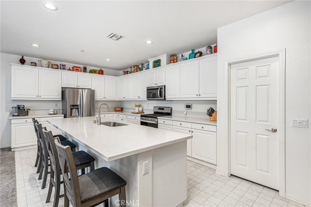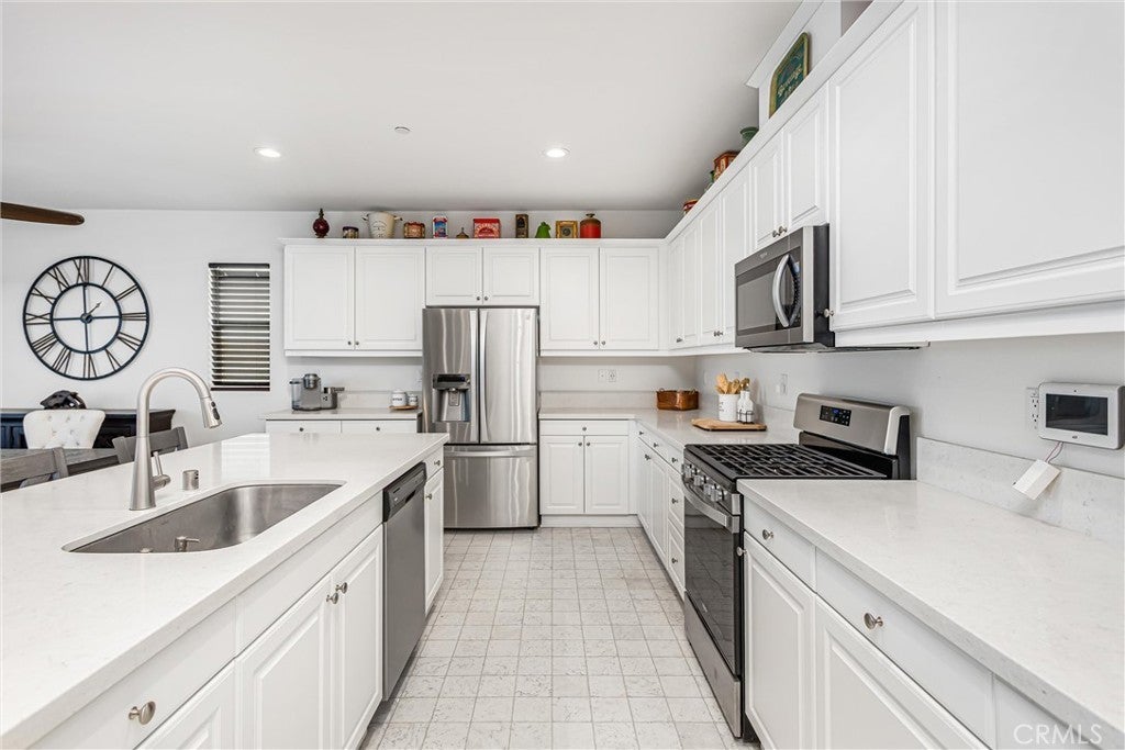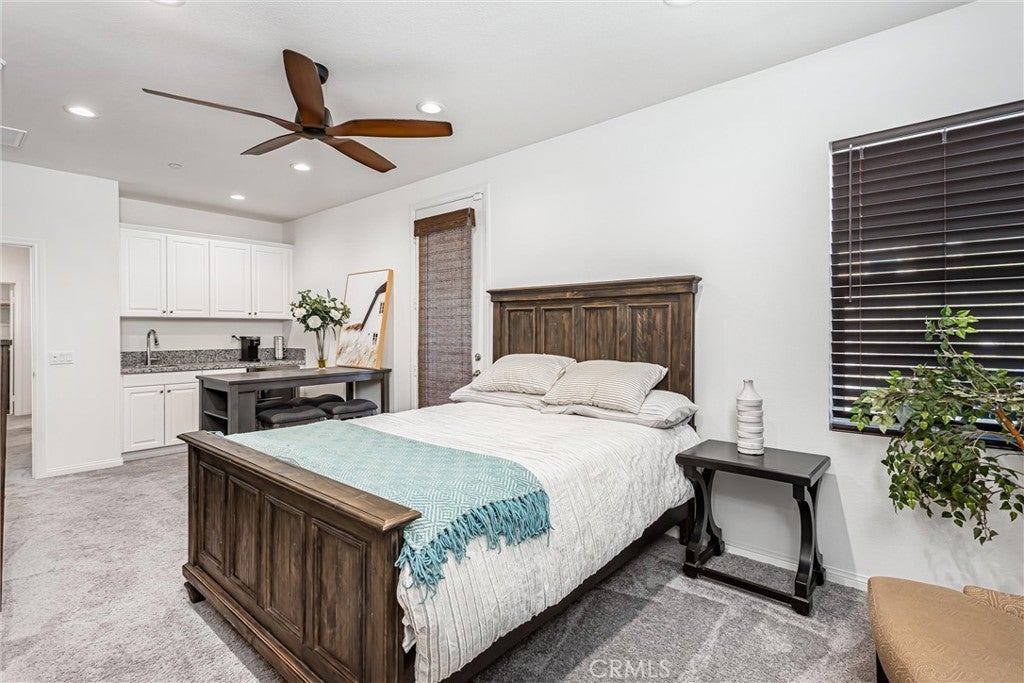 This single-story home, built in 2022 and nestled in the sought-after Spring Mountain Ranch Community, seamlessly blends comfort and style throughout.The kitchen is a dream, featuring stunning quartz countertops, sleek stainless steel appliances, a walk-in pantry, and a large center island with bar seating. Expansive windows at the back of the house invite natural light in and offer views of the backyard and outdoor living area. This residence includes four generously sized bedrooms and three beautifully appointed bathrooms. The fourth bedroom serves as a junior suite, complete with a kitchenette, mini bar refrigerator, walk-in closet, full bath, and its own entrance—ideal for guests, multi-generational living, or potential rental income. The spacious primary suite serves as a tranquil escape, featuring a bathroom with dual sinks, a separate walk-in shower, and a soaking tub. The covered patio is perfect for outdoor dining and gatherings. The backyard is private, with no rear neighbors, and offers a serene space to unwind and take in the breathtaking sunsets.Additionally, the home is equipped with solar panels for improved energy efficiency and savings. The community itself features a six-acre park and six miles of walking trails, all without a homeowners association. Conveniently located with easy access to the 215, 60, 10, and 91 freeways, this property provides a retreat-like atmosphere while being just minutes away from UC Riverside, Loma Linda Hospital, and shopping options.