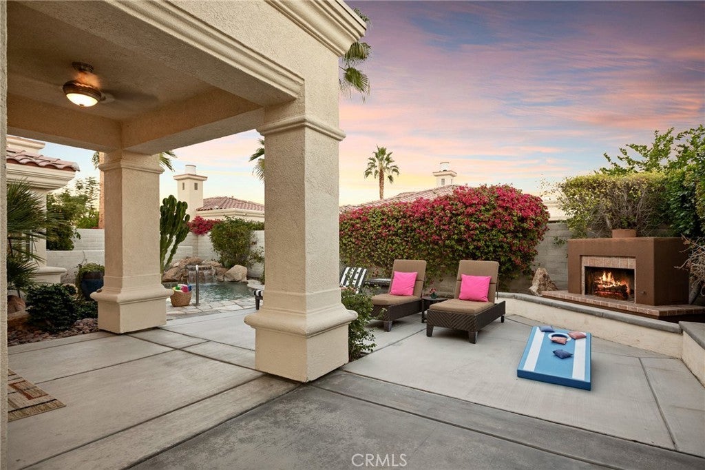 Fantastic opportunity in one of La Quinta's most sought after neighborhoods! Ideally positioned in Puerta Azul's most desired location, this beautiful turnkey home features a private spa/pool in the spacious and private south-facing backyard with outdoor fireplace and mountain views. Inside, one will enjoy the well thought-out floorplan with high ceilings throughout, an inviting great room with fireplace which opens seamlessly to the backyard for effortless entertaining with family and friends as well as a powder bathroom located off of the entry. In addition, there are two primary suites with each having their own bathroom and one which opens to a beautiful, secluded patio area perfect for morning coffee. There is also a one car garage with direct home access. Puerta Azul is a gated, exceptionally well maintained community with reasonable HOA dues featuring two resort-style pools, tennis court, bocce ball area as well as a fantastic clubhouse with a beautiful fitness center. Furthermore, Puerta Azul is one of the very few communities in the city of La Quinta which allows for short-term rentals with no nightly minimum, allowing homeowners to capitalize on its exceptional location. Puerta Azul is located just minutes to world-class golf and tournaments at PGA West, fine dining and shopping at Old Town La Quinta, the Empire Polo Club where the Coachella and Stagecoach festivals are held in addition to some of the most prestigious golf clubs in the entire Coachella Valley. This home has been a successful short term rental with future bookings scheduled that can be seamlessly transferred to the new homeowner. Whether you are looking for a fully furnished seasonal desert retreat, investment opportunity or perhaps both, this exceptional property offers it all!