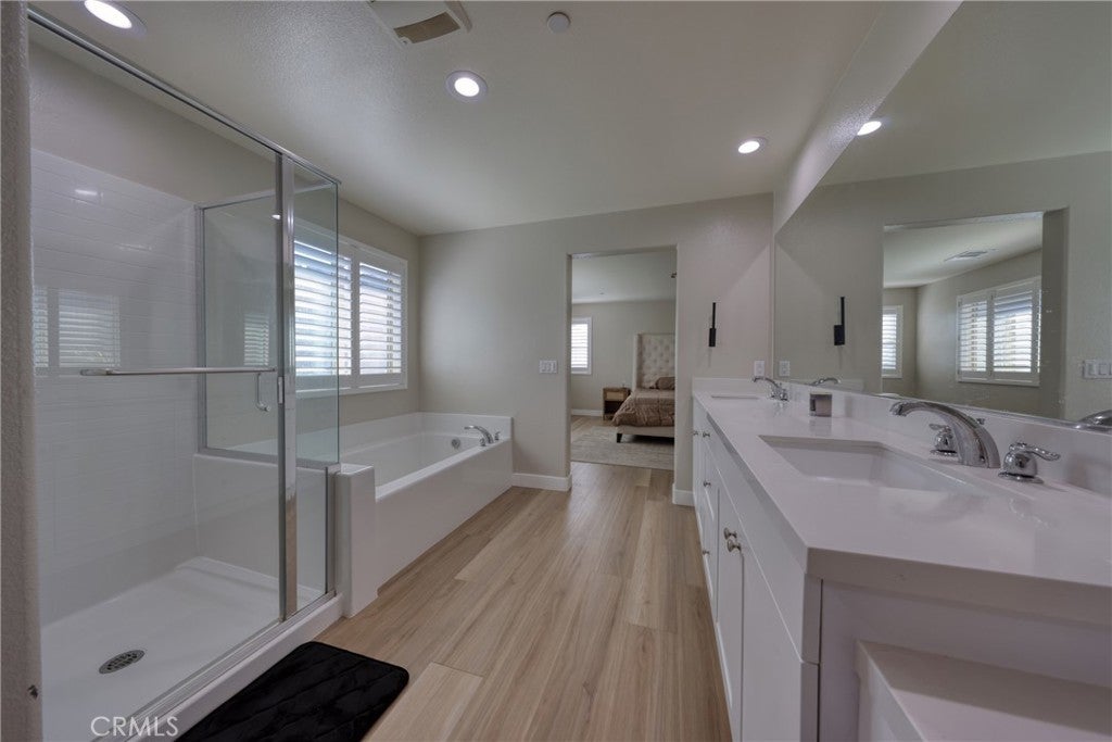 Welcome to this stunning, like-new 5-bedroom, 3-bath home offering 2,811 sq ft of beautifully designed living space, perfectly situated in a quiet cul-de-sac. Step inside to an open, inviting layout enhanced by upgraded light fixtures and a modern, upgraded fireplace that adds warmth and style to the living area. The spacious kitchen and dining areas flow seamlessly for entertaining, while the oversized primary suite features custom walk-in closet cabinets for exceptional storage and organization. One bedroom and full bathroom downstairs offer added convenience for guests or multigenerational living. Outside, the home is complete with fully finished landscaping in the front, ideal for relaxing, hosting, or simply enjoying low-maintenance outdoor beauty. The garage is a true standout, showcasing epoxy flooring and built-in cabinets, providing a clean, polished, and highly functional space. This home feels like brand new from top to bottom—meticulously maintained and thoughtfully upgraded. Don’t miss your chance to see it in person—properties with this level of care, upgrades, and location rarely come available. Come and see it!