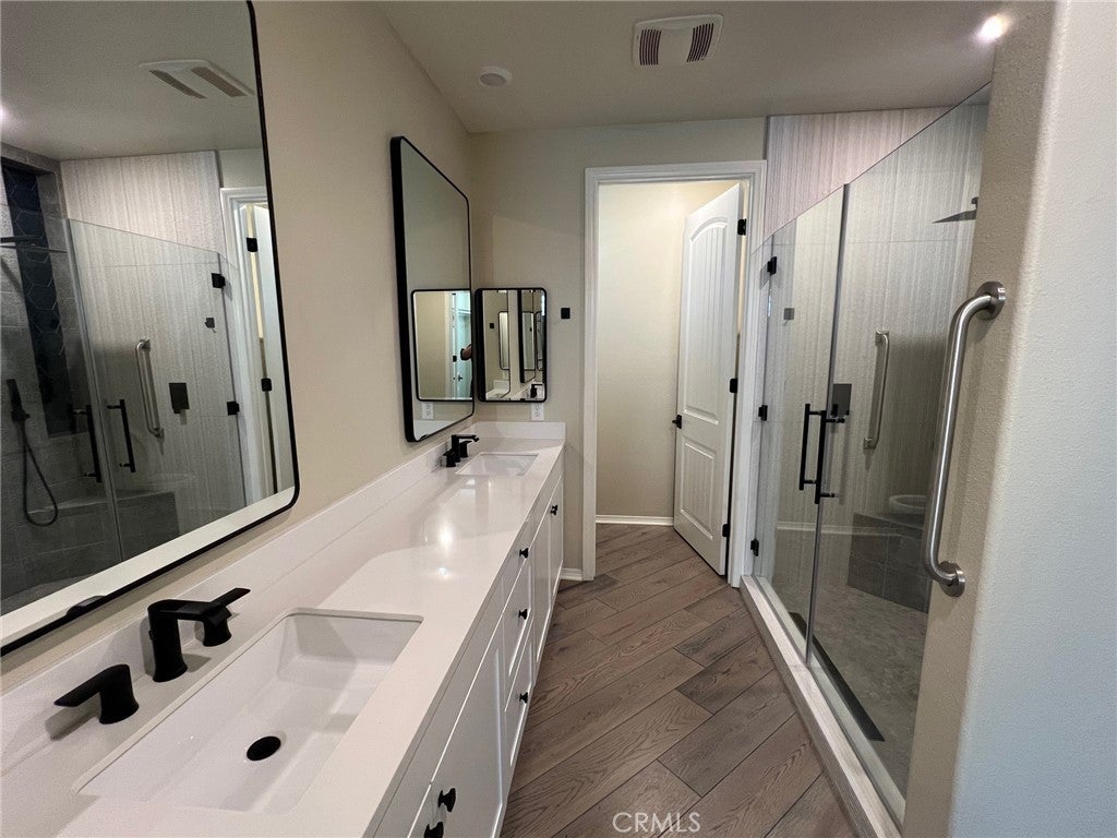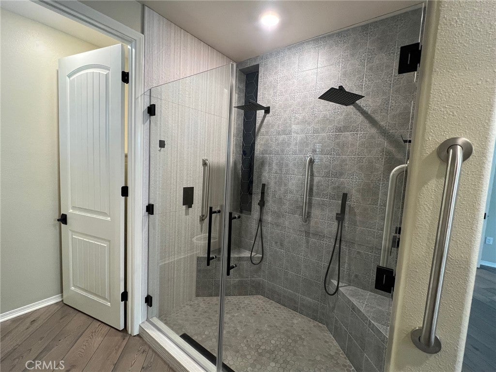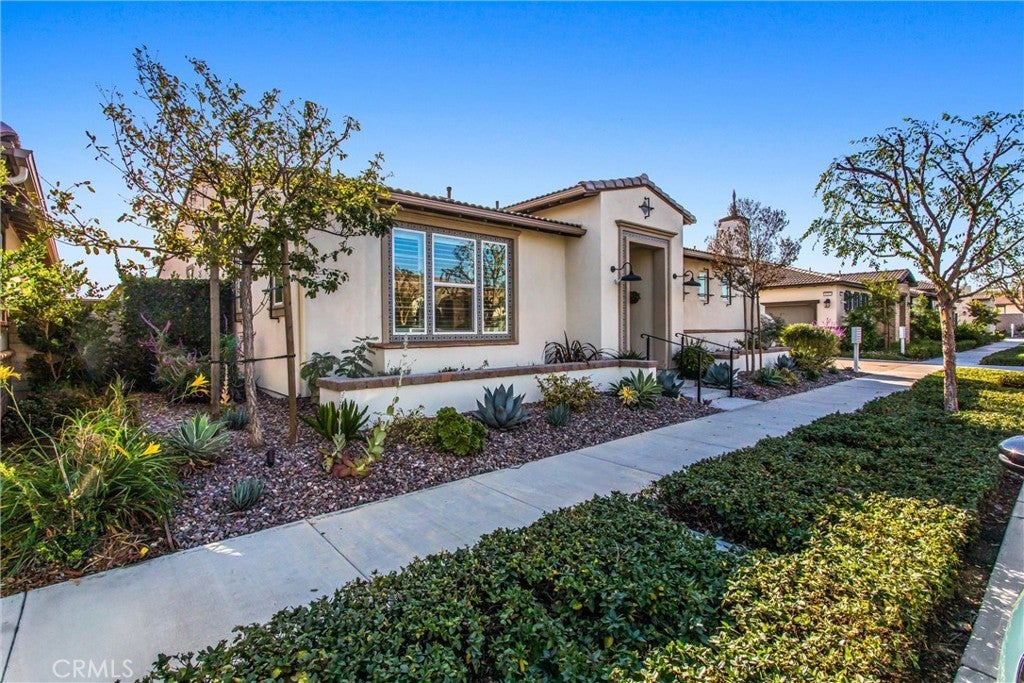 Solar is paid off!! Free Solar! REMODELED Spanish Masterpiece in Esperanza – Ontario’s Premier 55+ Community Welcome to this stunning former model home in Esperanza, an exclusive gated community designed for active adults 55+. Residents enjoy resort-style living at the 9,000 sq ft La Jolla Club featuring a sparkling pool, spa, state-of-the-art fitness center, indoor/outdoor kitchens, and pickleball and bocce ball courts. Additional amenities include a dog park and community garden. Recent Upgrades by prior owner (2024): Exterior Enhancements: • Fresh exterior paint and new gutters • Upgraded lighting throughout • Professionally designed low-maintenance landscaping with new drip irrigation system • Landscape lighting and outdoor ceiling fans • Strategic drainage solutions • Drought-tolerant plantings • Premium artificial turf side yard – perfect for pets Interior Improvements: • Beautiful engineered hardwood flooring throughout • Custom Spanish tile dual shower in primary bath with dual showerheads and handheld fixtures • Plantation shutters on all windows • Custom wood ceiling fans throughout • Soft-close rollout trays in cabinetry for maximum storage • Custom wood accent wall in second bedroom/office • Versatile office/closet space with original fixtures available Additional Features: • Owned solar panels – no lease! • Tankless water heater with recirculating pump • Overhead tote storage system in garage Prime Location: Ideally situated within the community with convenient access to shopping and amenities. This meticulously maintained home combines Spanish elegance with modern convenience – truly turnkey and ready for you to enjoy the Esperanza lifestyle! Come take a look.