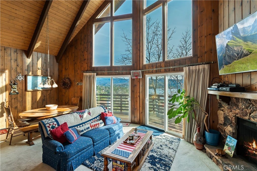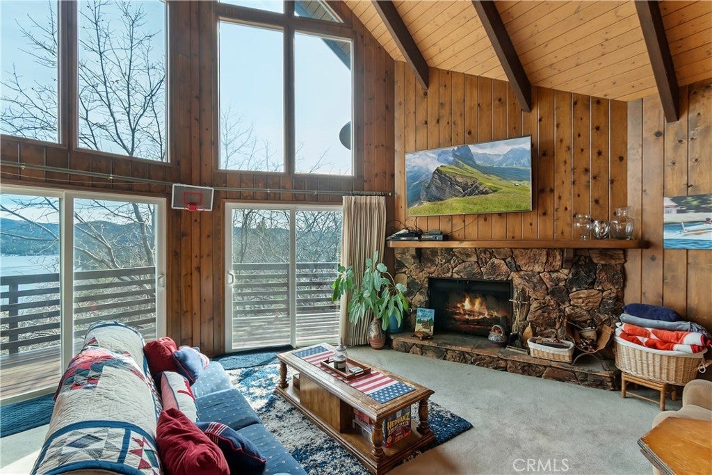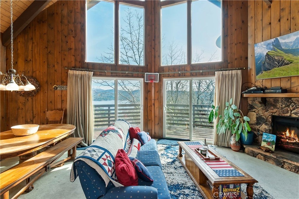 1096 Nadelhorn Drive | Lake Arrowhead Perched above the trees on a private road, this stunning prow-style mountain retreat delivers the kind of panoramic lake views that make Lake Arrowhead living so special—yes, you can watch the Fourth of July fireworks light up the sky right from your deck. Step inside to soaring ceilings and a dramatic wall of windows that frames the lake like a living work of art. The open great room flows seamlessly to expansive decks—perfect for morning coffee, sunset gatherings, or simply soaking in the serenity of the mountains and water below. The main level features two comfortable bedrooms, ideal for guests or easy main-floor living. Upstairs, a spacious loft-style primary retreat offers privacy and elevated views, while the lower-level den provides a flexible space for a media room, home office, or extra guest accommodations. Surrounded by nature yet conveniently located close to the lake and Lake Arrowhead Country Club, this home blends peaceful seclusion with easy access to golf, dining, and year-round recreation. If you’ve been dreaming of a classic Lake Arrowhead prow home with iconic views, beautiful outdoor spaces, and a true sense of retreat—this is the one.