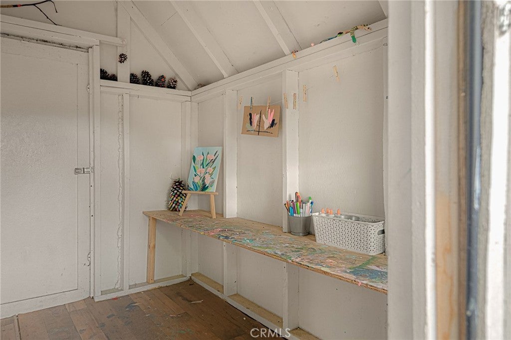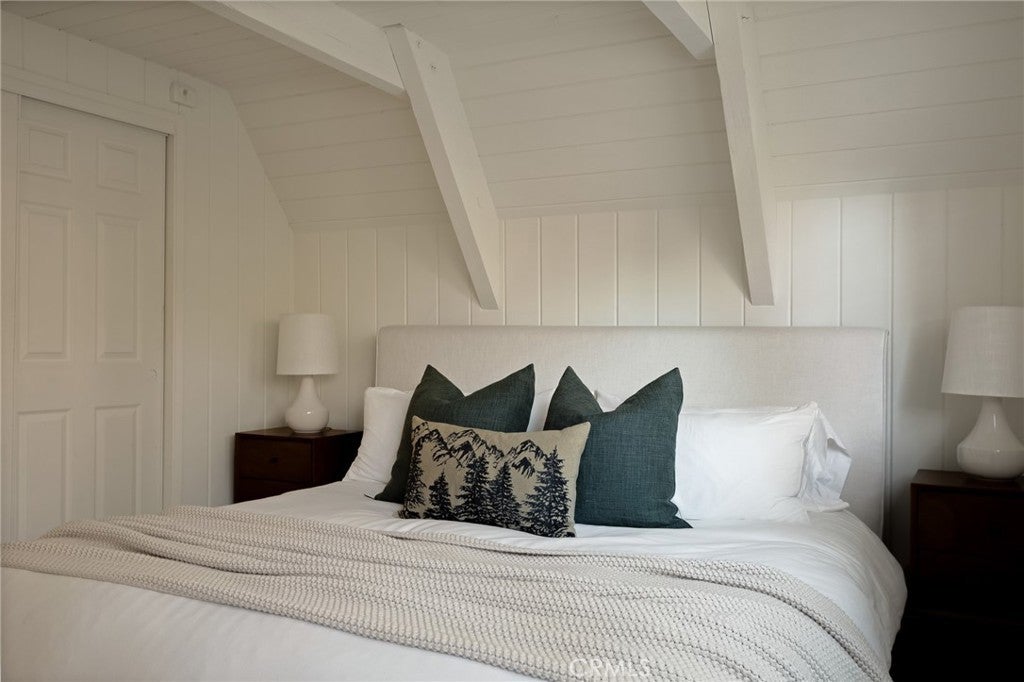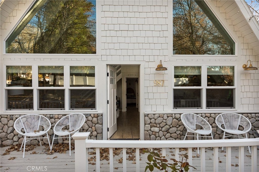Here it sits, your quintessential "A-Frame" located in Lake Arrowhead with Lake Rights in a coveted neighborhood. built in 1964 this is the epitome of A-Frames, located in a cul-de-sac on a gradual downslope, near level lot, with lots of parking and close to the Tavern Bay Beach Club. With only one step up to the front door upon entering you'll be wowed by the soaring vaulted ceilings, captivating open space and flood of natural light. It almost feels effortless to glide through this space. On the main floor you'll find the living room, renovated kitchen, dining space, 2 bedrooms a main floor bath, and access to the back deck. Upstairs is a an open loft "primary suite" bedroom with full bath, secret nook, and the laundry/storage closet. The outside space is highly usable and you'll find little areas to sit and rest allowing you to take in the towering pine and oak trees. There is even a small shed out back that is currently bing used as an art space. Some of the renovations include, dual pain windows, front hardiebacker siding, light fixtures, paint and more. Home is equipped with central AC and comes furnished, minus sellers exclusions. This is a highly active STR, Don't let this one slip out of your hands.