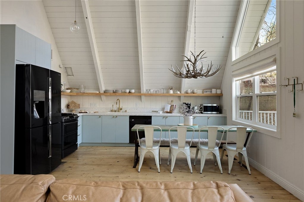 - Interior FeaturesCathedral Ceiling(s), Eat-in Kitchen, Open Floorplan, Bedroom on Main Level, Furnished, Living Room Deck Attached