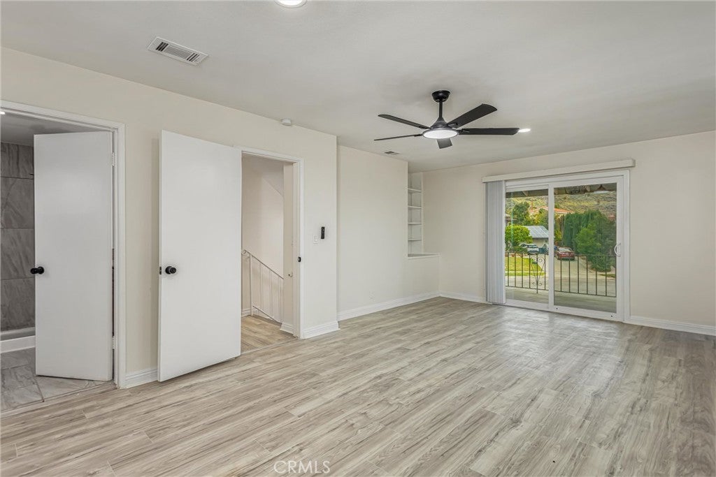 Freshly updated and move-in ready, this expansive 8-bedroom, 4-bath home offers exceptional flexibility with a separate attached ADU, all situated at the top of a cul-de-sac at the base of the San Bernardino Mountains, just moments from Yaamava’ Resort & Casino. The main residence features 6 bedrooms and 3 bathrooms, while the attached ADU adds 2 additional bedrooms, 1 bath, a kitchenette space, and its own private side entrance—ideal for extended family, guests, or multi-generational living. Inside the main home, a spacious living room with a gas fireplace welcomes you and flows seamlessly into the freshly updated kitchen, complete with new quartz countertops, dark cabinetry with updated hardware, stainless steel appliances, and a center island, all open to the nearby dining area. The downstairs level includes two bedrooms and a shared bathroom featuring a walk-in shower and a granite vanity along with a convenient laundry area and direct access to the backyard and pool. Upstairs, you’ll find an additional four bedrooms and two bathrooms, all bedrooms are equipped with new ceiling fans. The shared upstairs bathroom features a freshly tiled shower/tub combination and granite vanity. The generous primary suite offers ample closet space, a ceiling fan, built-in shelving, access to an extended front balcony that spans the length of the home, and an en-suite bath with a granite vanity and a fresh, new walk-in shower. Recent upgrades throughout the home include fresh interior and exterior paint, new laminate wood flooring in all bedrooms upstairs and downstairs, tile flooring in the kitchen and bathrooms, new recessed lighting, new appliances, new toilets, new windows, new sliding doors, and a brand-new roof. A large enclosed patio room at the rear leads you to the attached ADU that offers its own kitchenette area with cabinet storage, sink, and space for a refrigerator, as well as two bedrooms and an updated bath with a tiled walk-in shower. The enclosed patio also opens to the private backyard, offering a covered patio and a sparkling pool—perfect for entertaining or relaxing. There’s also a side gate offering possible RV parking. With its flexible layout, extensive updates, and desirable location, this property presents a rare opportunity for comfortable and versatile living.