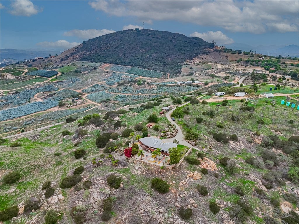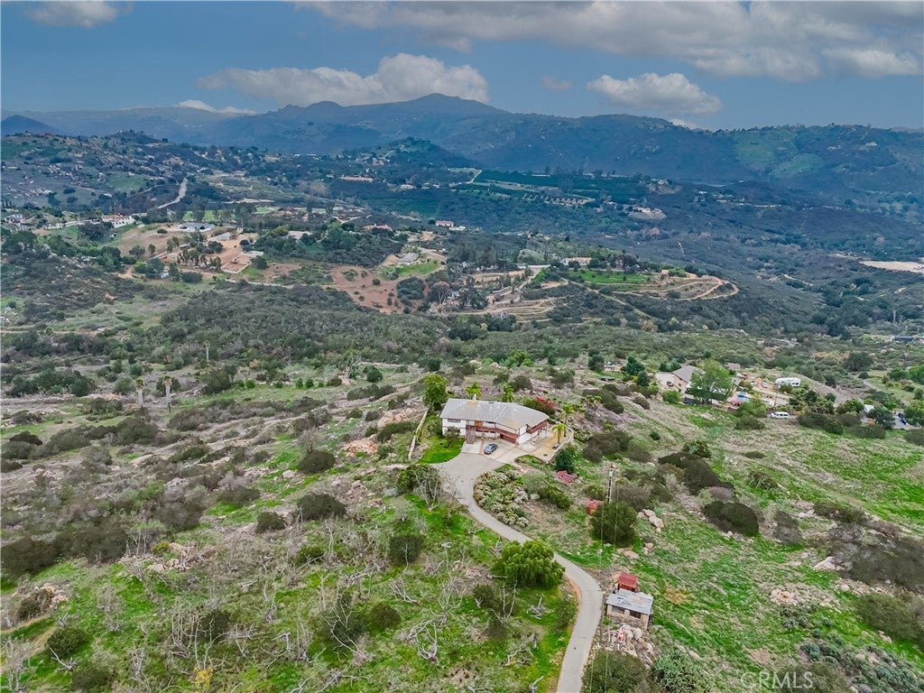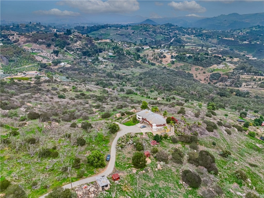 First time on the market! Original owners lovingly built this family hub for all celebrations. This two-story masterpiece includes a lower-level bar, stereo system, fireplace and pizza oven. This level also includes two bedrooms, full bathroom and lots of storage. This space can easily be converted to a separate apartment for rental option or multiple family living. The upper level includes another bedroom with hall bath and main bedroom with ensuite bath. The kitchen opens into a great room with island and living room that has views galore! Large celebration room next to the kitchen and living room can be used as an incredible main bedroom, dining room, family gym, or anything else your imagination can dream of. The walk-in pantry lends itself to store not only food, but crafts, clothing, decorations, and much more. Venture outdoors to check out the views from the wrap around decking upstairs. Two total parcels of a little over 16 acres surrounding the home can be kept as a beautiful nature scene just like you see it, plant an orchard of avocados, or terrace the land to create beautiful rows of grape vines. There are so many possibilities! The courtyard is large enough to host weddings, receptions, milestone birthday parties, or entertain clients and friends. The view is breathtaking! If you aren't familiar with Valley Center, this quaint community is known for its charming rural atmosphere, and agriculture, namely nuts and lavendar. Local fun can be found at Bates Nut Farm, Valley View Casino, Lavender Farms, the Valley Center Stampede Rodeo, and local wineries. Valley Center offers a peaceful escape with rolling hills, orchards, and a strong sense of community spirit, balancing small-town feel with economic vitality.