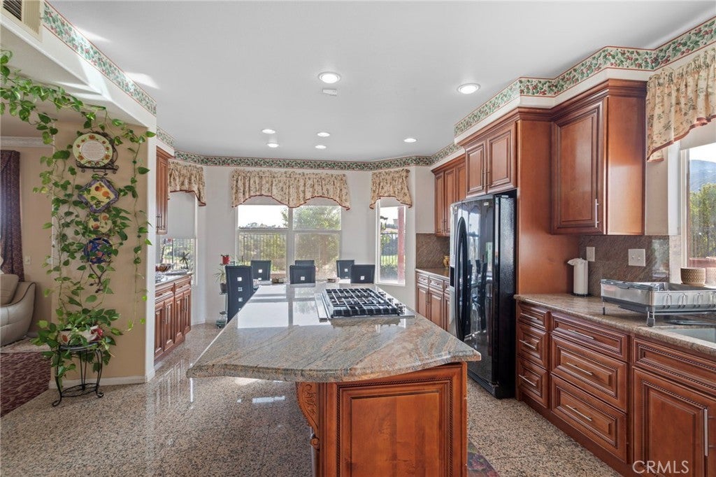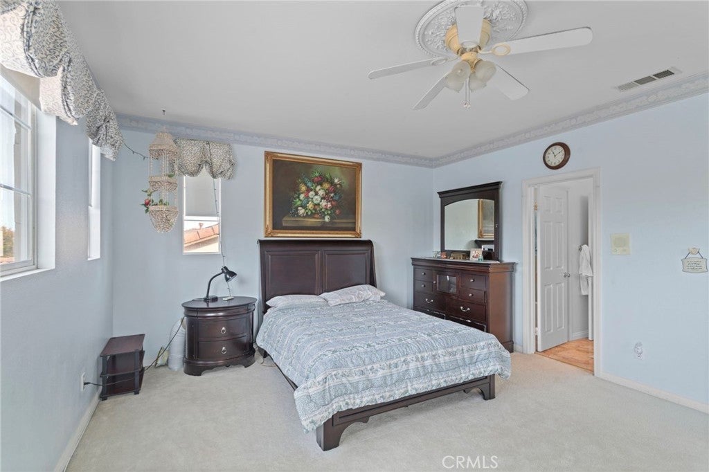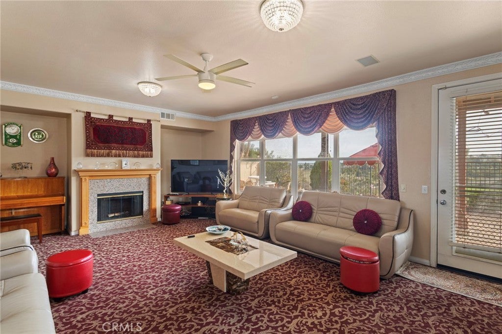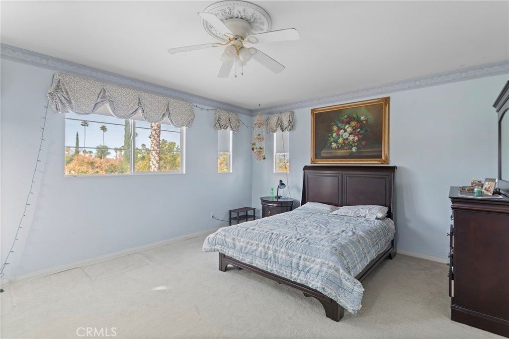 Situated in the scenic green foothills of South Corona, this expansive home offers nearly 4,000 sq. ft. of living space on an over half-acre lot in one of the area’s most desirable neighborhoods. With no rear neighbors, enjoy breathtaking mountain views and exceptional privacy year-round. There are 5 bedrooms upstairs and a full bedroom and bathroom on the main level provide excellent flexibility for guests or multigenerational living. The grand entry welcomes you with a dramatic foyer and chandelier, leading to a formal living room with fireplace and a formal dining room perfect for entertainment. The open family room connects seamlessly to the kitchen and breakfast nook, featuring a center island with countertop seating and ample storage. A dual staircase enhances both function and flow. Upstairs offers a thoughtfully designed layout, including Jack-and-Jill bedrooms and a spacious primary suite with a private balcony, ideal for enjoying panoramic mountain views. An additional main-level office or flex space with attached bath includes private access to both the front and backyard, making it ideal for a home office, studio, gym, or potential guest space. Outdoor living truly shines with a large, covered patio, BBQ island with sink and stove, and expansive yard space perfect for gatherings or relaxation. The property also includes a large double-door RV gate with ample parking for an RV, boat, or additional vehicles, plus a tool shed for extra storage. Additional highlights include dual A/C units and exceptional lot size, offering both comfort and functionality in a prime South Corona location. Close to schools, park and other amenities. Low HOA and taxes.