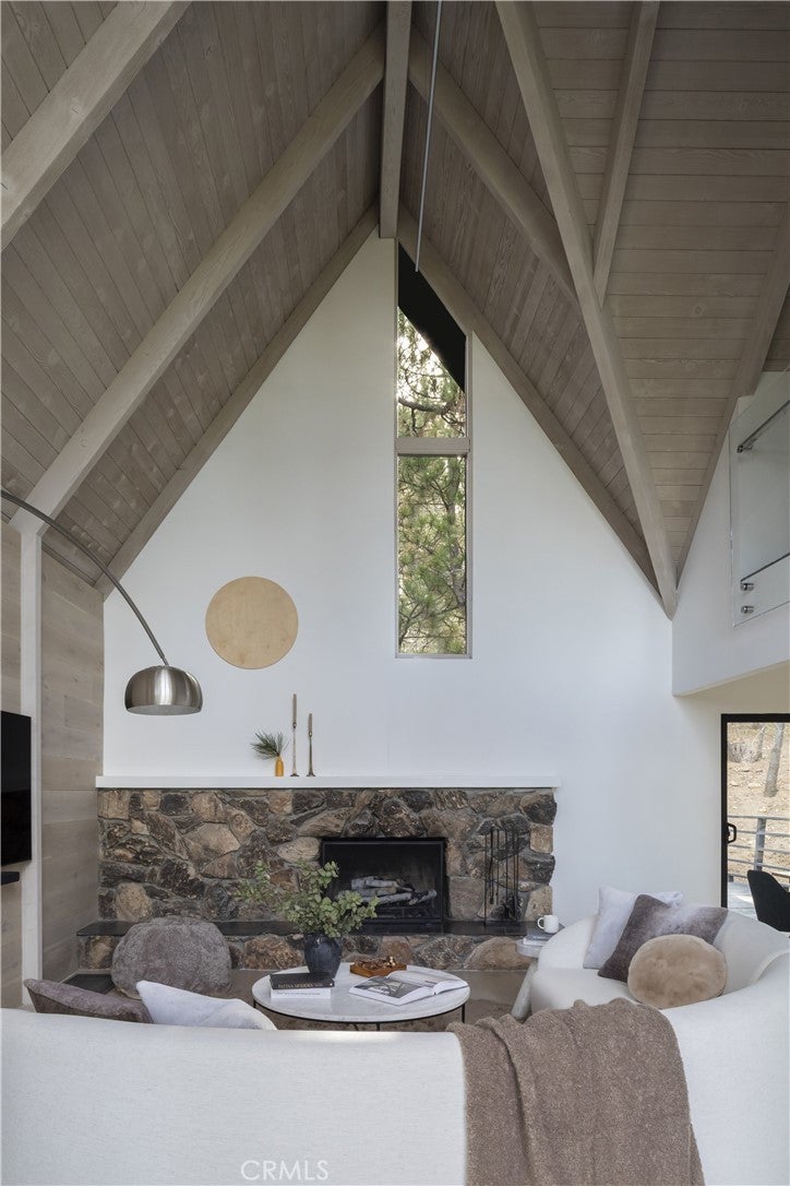 - Interior FeaturesBeamed Ceilings, Cathedral Ceiling(s), High Ceilings, Open Floorplan, Bedroom on Main Level, Loft, Main Level Primary, Primary Suite