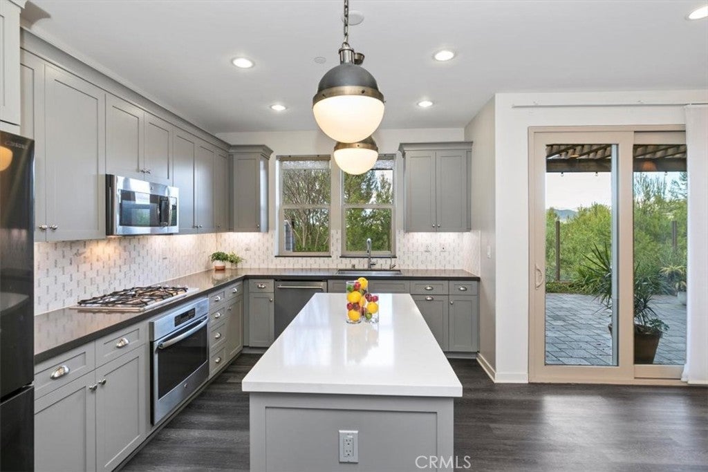 Views! Views! Views! This beautiful move-in ready Lake Forest home exudes pride of ownership and has been meticulously cared for. Upon entry you will immediately notice the nice open floorplan that connects the kitchen to the family room and leads to the backyard for al fresco dining or entertaining. The kitchen has stainless steel appliances, quartz countertops, custom tile backsplash, under counter LED lighting, pantry, and island. Throughout this home there are many upgrades such as laminate flooring, custom window treatments, walk-in closets with organizers, custom tile, modern lighting fixtures, and new interior paint. Additional features include NEST programmable thermostats, SOLAR, water softener, reverse osmosis system, and 240v in the garage. There is one full bedroom and bathroom downstairs. Three additional bedrooms and two bathrooms are upstairs including a primary suite with gorgeous views. The laundry room is upstairs and has a washing machine, dryer, and utility sink. There are no neighbors behind this home creating a wonderful ambiance and sense of privacy. Enjoy relaxing in the seating area next to the firepit or under the twinkle lights on the patio cover. The community offers so many amenities including a clubhouse, resort style pools, parks, tennis/pickleball courts, walking paths, and so much more!! Conveniently located just a short distance to shops, restaurants, parks, highly ranked schools, and just a few miles to the 241 or 5 freeways for easy commutes.