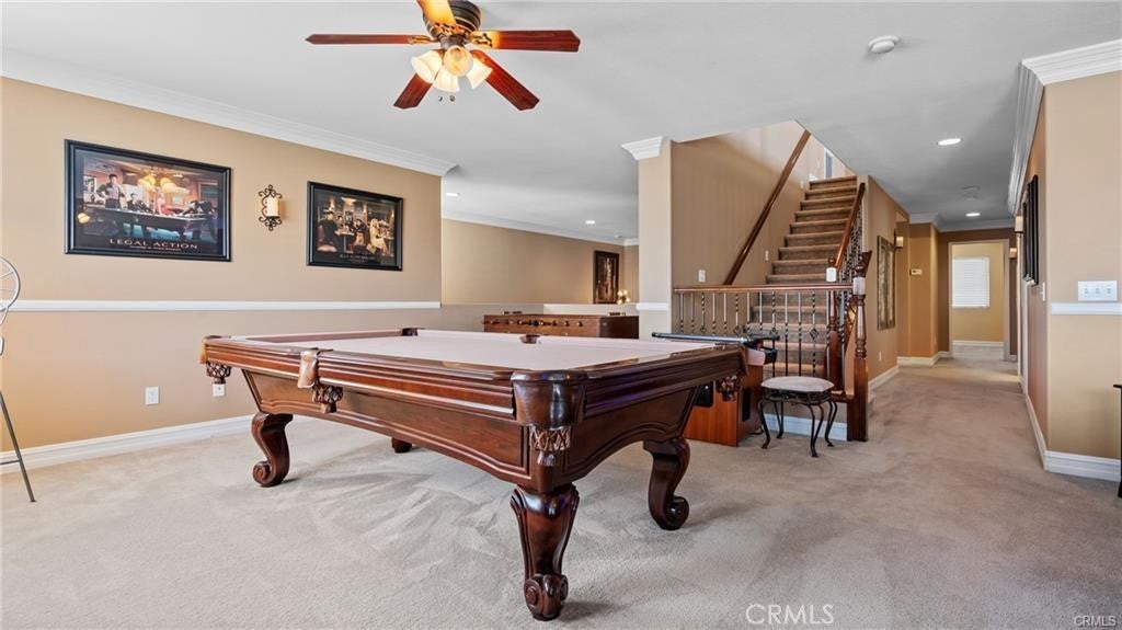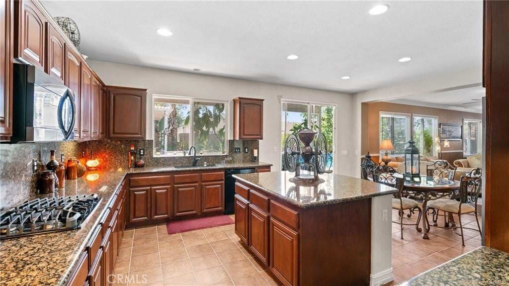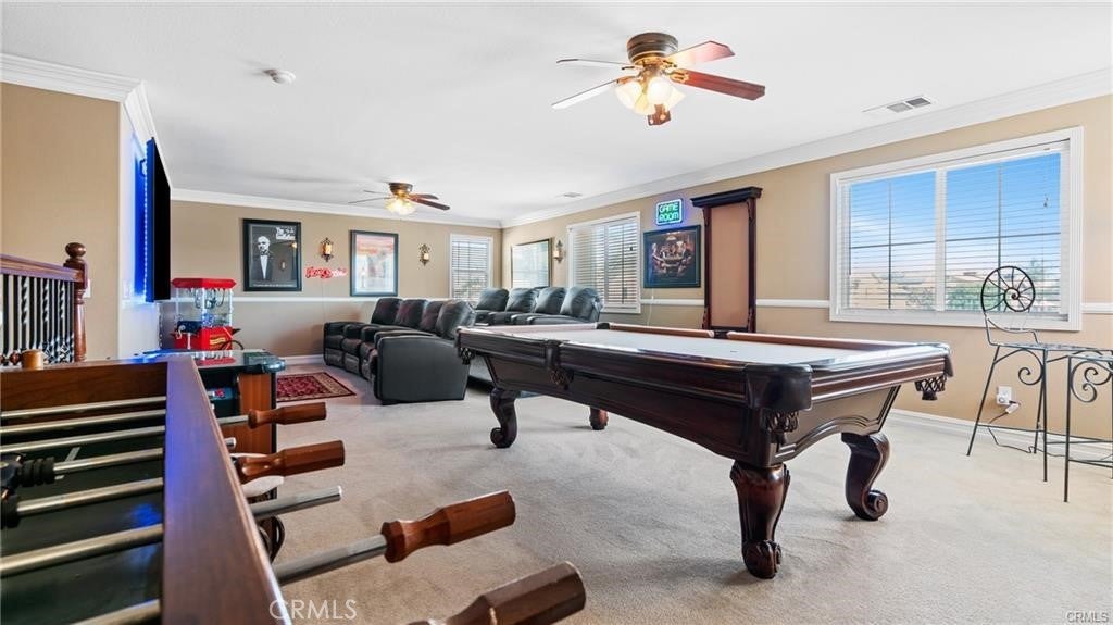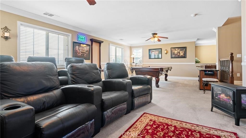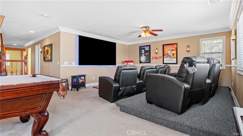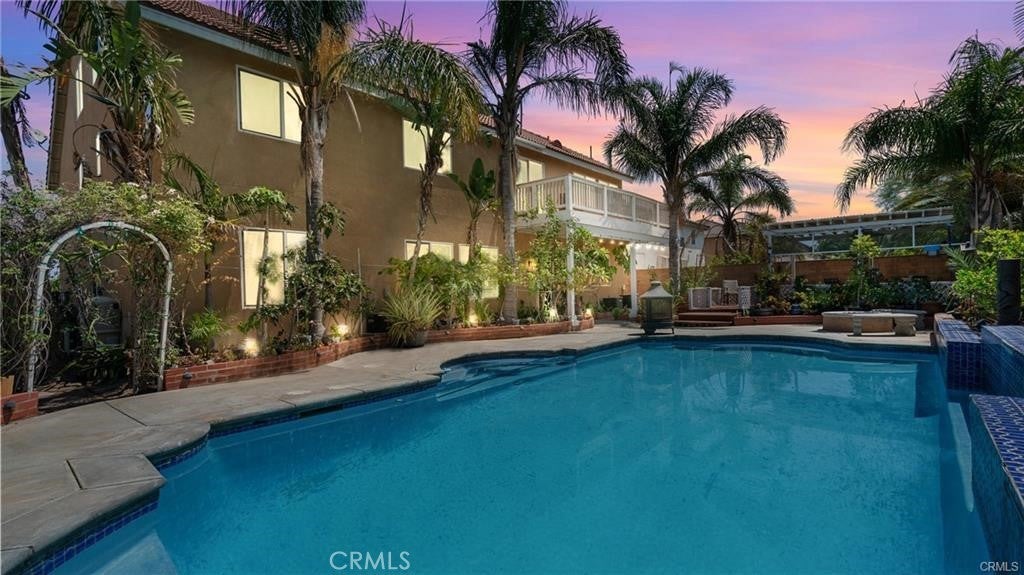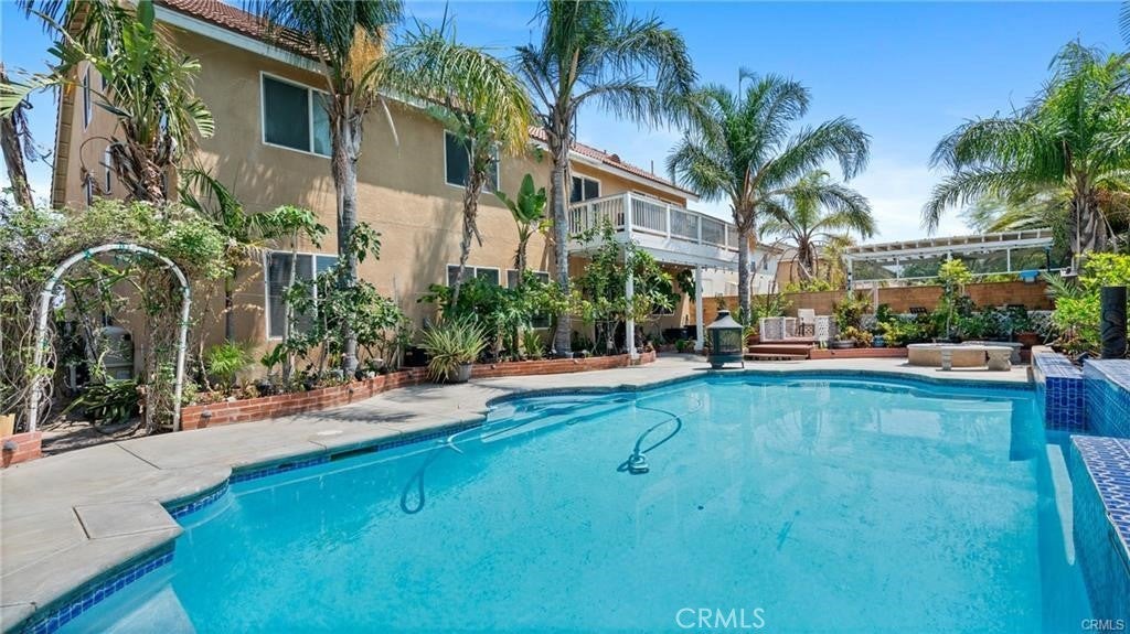 Stunning Resort-Style Pool Home in a Highly Desired Neighborhood! Welcome to your dream home—an entertainer’s paradise tucked in a quiet, beautifully maintained community. This spacious three-story residence combines elegant finishes, resort-style amenities, and ample space for family living and entertaining. As you approach, you’ll be charmed by the home’s impressive curb appeal, featuring a freshly manicured lawn, mature landscaping, and a wide driveway leading to a 3-car garage. A cozy front patio with a bench and lush potted plants provides a welcoming touch. Step inside through double entry doors into a grand foyer with soaring ceilings and elegant tile flooring. The expansive floor plan boasts a warm and inviting formal living room with crown molding, a gas fireplace, and gorgeous hardwood flooring. The formal dining area features classic chair rail detailing and large windows that flood the space with natural light, ideal for holiday gatherings and formal dinners. The chef’s kitchen is a culinary masterpiece! With rich dark wood cabinetry, granite countertops, a large center island, built-in oven and microwave, and sleek black appliances, it offers both function and style. The adjacent dining nook and open layout make this kitchen perfect for casual family meals or weekend brunches. Relax in the ultimate upstairs game and media room, complete with plush theater seating, a billiards table, and a cozy fireplace. This versatile loft space offers endless possibilities for fun, lounging, or even converting into additional bedrooms or office space. Retreat to the spacious primary suite, where you’ll find serene views, neutral tones, and a spa-like en-suite bathroom. The primary bath features a large dual-sink vanity, separate soaking tub and shower, and a walk-in closet with mirrored sliding doors. Step outside into your private tropical oasis! The stunning backyard showcases a sparkling swimming pool with built-in spa, surrounded by lush palm trees and vibrant landscaping. Entertain under a charming covered gazebo deck, dine al fresco on the patio, or unwind around the custom-built fire pit. Additional features include: Multiple living and entertaining areas, Large guest bathrooms with upgraded vanities, Indoor laundry room, Central A/C and heating, Security system in place, Meticulously maintained throughout. This one-of-a-kind property is the perfect blend of luxury, comfort, and resort-style living.