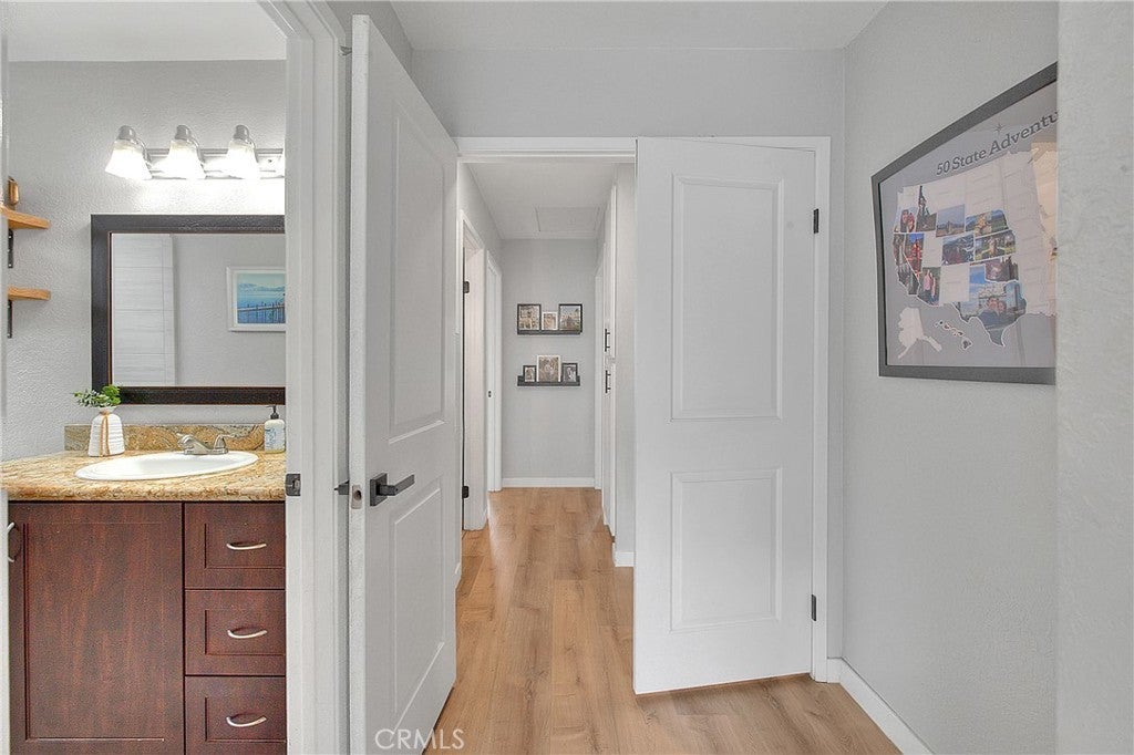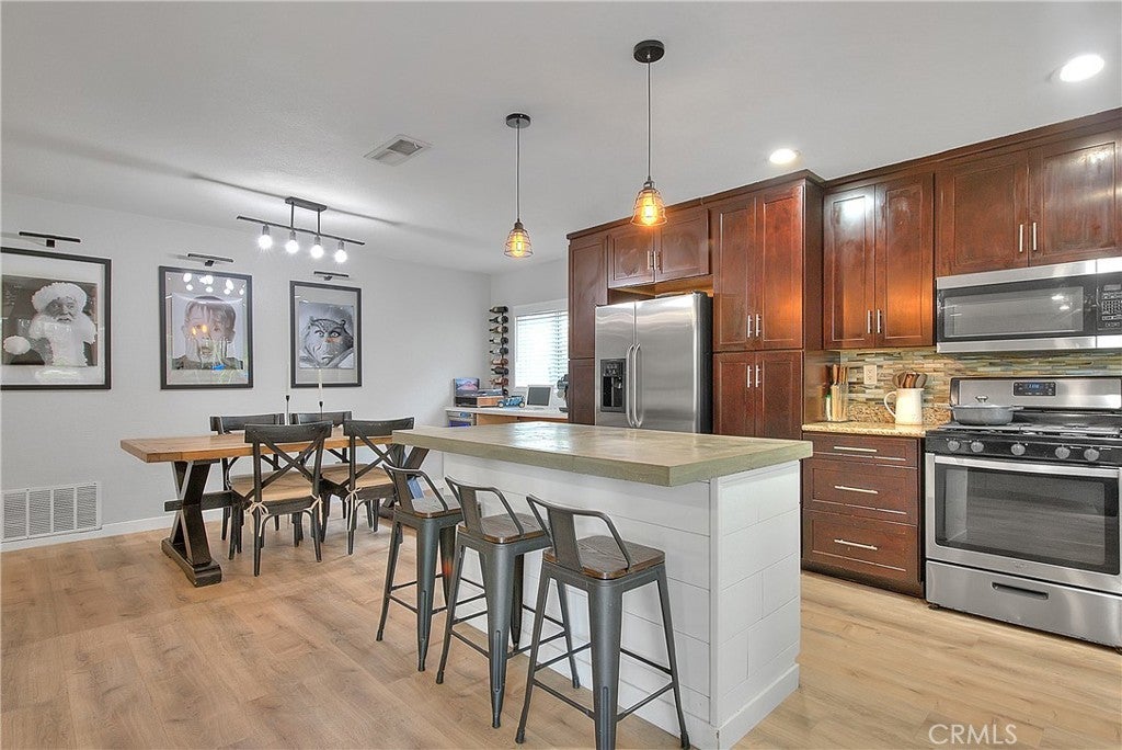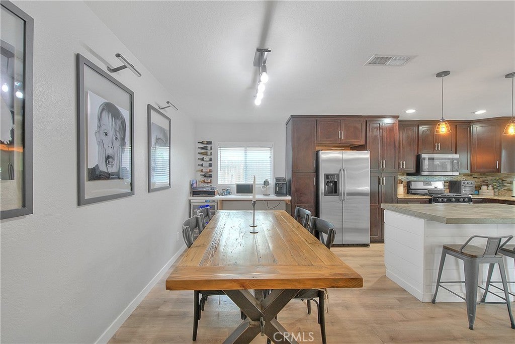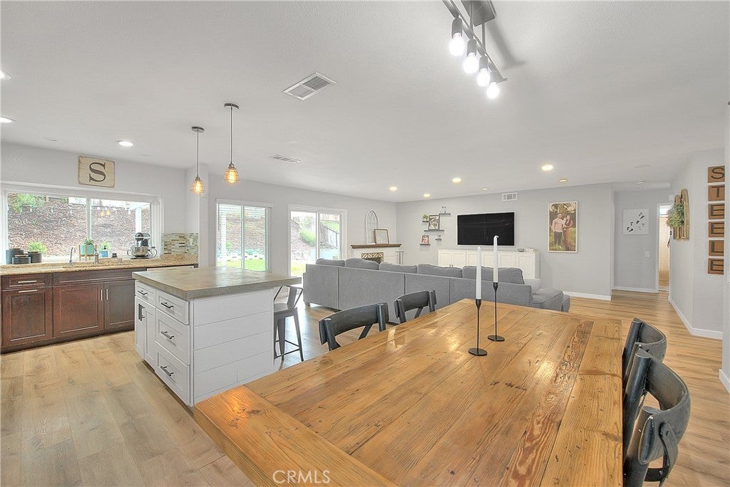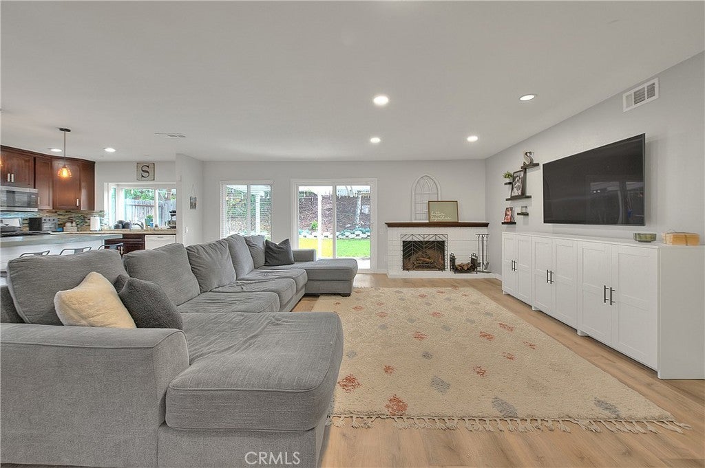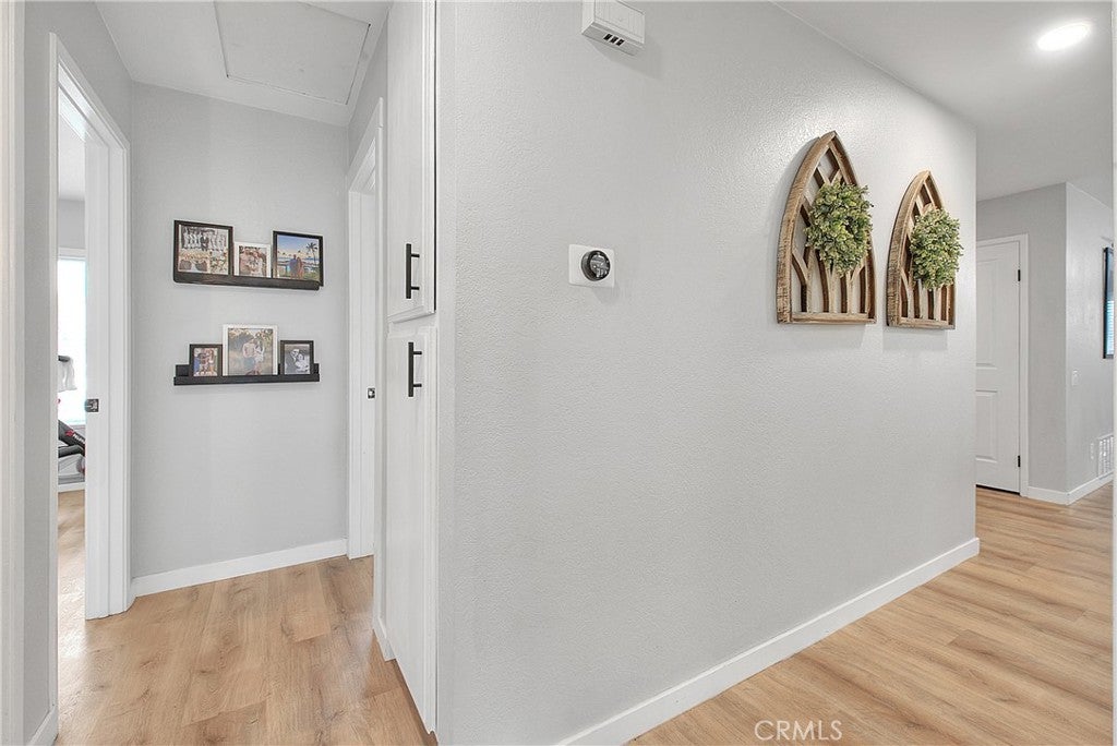 Beautifully upgraded single story home located in the prestigious City of Corona. This meticulously maintained residence offers 1,393 sq ft of living space on an expansive 9,148 sq ft lot, featuring 3 bedrooms, 2 full bathrooms, and a 2 car garage. Enjoy excellent curb appeal with a well manicured front yard, fresh exterior paint, and an extra wide driveway. Step inside to an inviting open floor plan enhanced by new dual pane windows, custom flooring, recessed lighting, upgraded baseboards, and window coverings throughout. The upgraded kitchen is ideal for entertaining and showcases a large center island, granite countertops, ceiling height cabinetry, glass tile backsplash, and ample storage space. The primary suite features upgraded flooring, a ceiling fan, barn door closet doors, a built-in organizer, and custom paint. The primary bathroom offers tile flooring, a custom vanity with granite counters, and a spacious walk-in tile shower. Bedrooms two and three are generously sized and include upgraded flooring, ceiling fans, and window coverings. The guest bathroom is tastefully updated with tile flooring, and a walk-in shower. The living room highlights recessed lighting, a charming brick fireplace, and multiple large windows overlooking the private entertainer’s backyard, complete with a patio cover, grass area, and space to relax or entertain. Conveniently located near the 15, 60, and 91 freeways, as well as parks, recreation, shopping, dining, entertainment, and schools. This turnkey home is a must see, don’t miss the opportunity to make it yours!