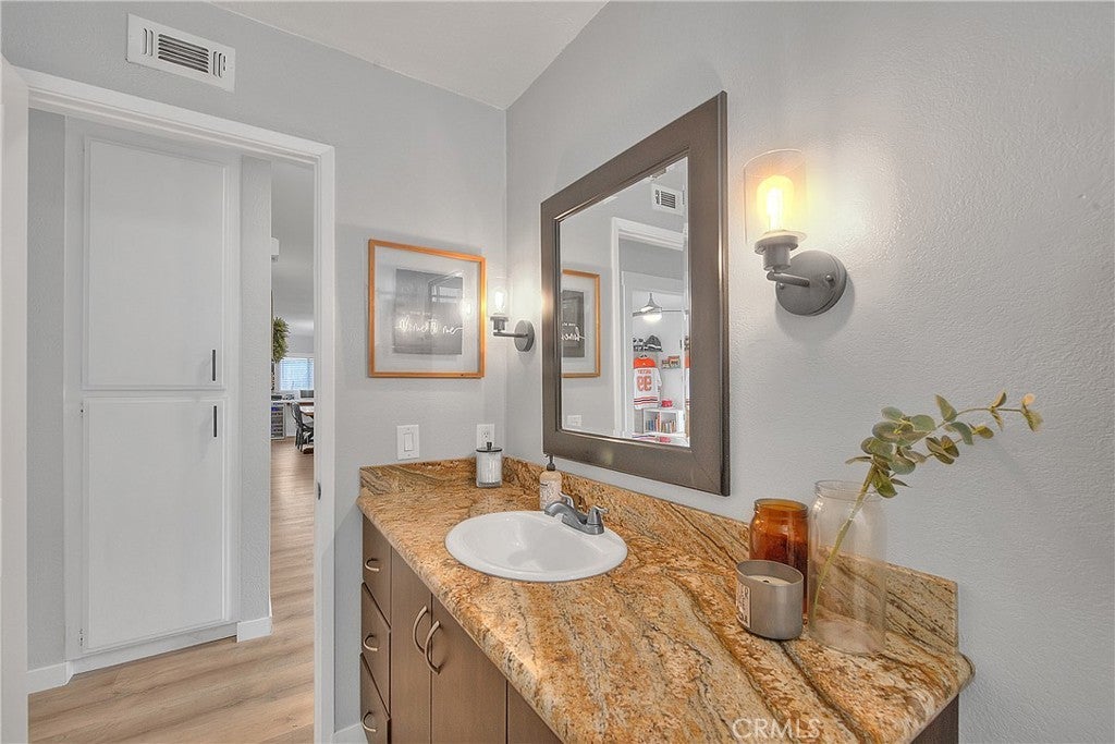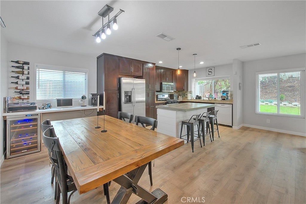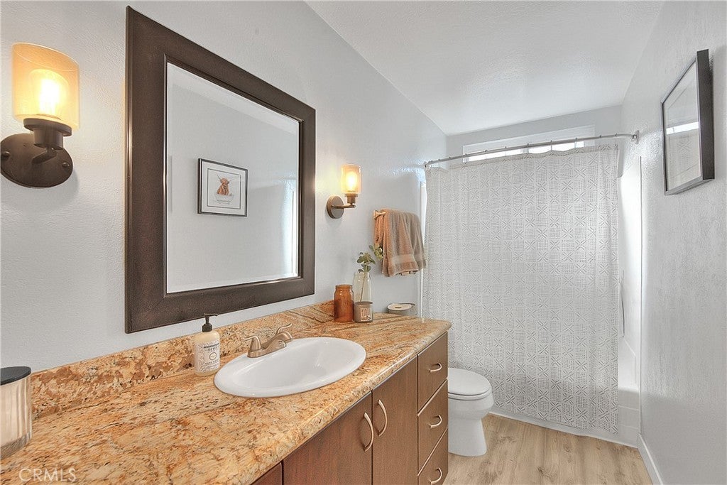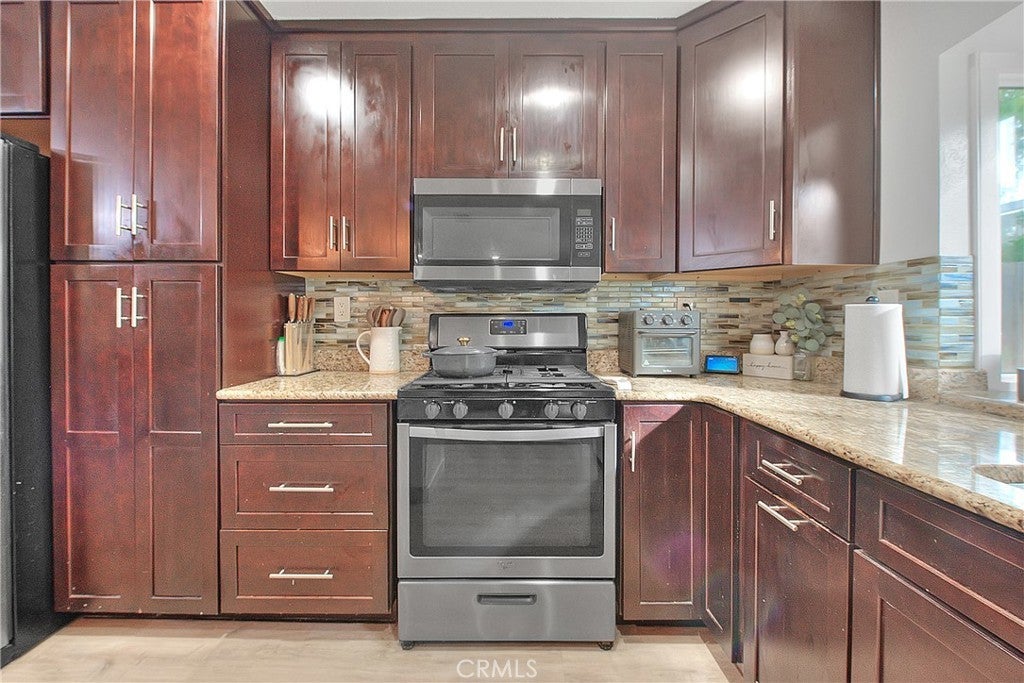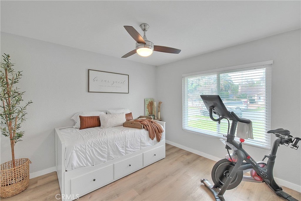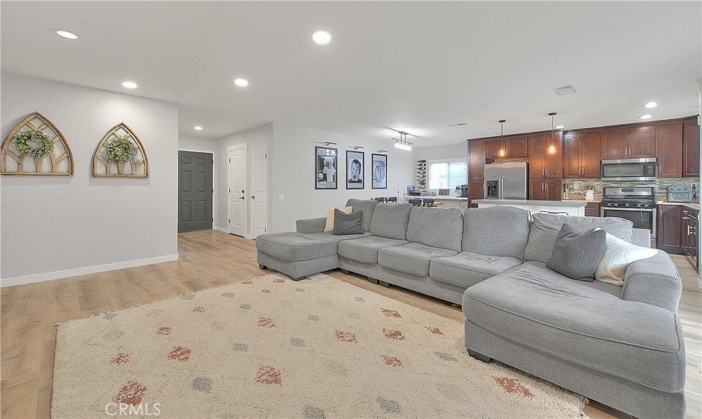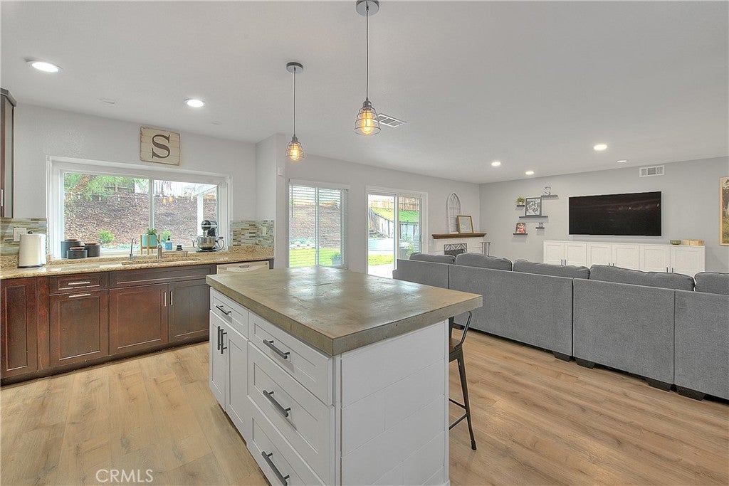 Beautifully upgraded single story home located in the prestigious City of Corona. This meticulously maintained residence offers 1,393 sq ft of living space on an expansive 9,148 sq ft lot, featuring 3 bedrooms, 2 full bathrooms, and a 2 car garage. Enjoy excellent curb appeal with a well manicured front yard, fresh exterior paint, and an extra wide driveway. Step inside to an inviting open floor plan enhanced by new dual pane windows, custom flooring, recessed lighting, upgraded baseboards, and window coverings throughout. The upgraded kitchen is ideal for entertaining and showcases a large center island, granite countertops, ceiling height cabinetry, glass tile backsplash, and ample storage space. The primary suite features upgraded flooring, a ceiling fan, barn door closet doors, a built-in organizer, and custom paint. The primary bathroom offers tile flooring, a custom vanity with granite counters, and a spacious walk-in tile shower. Bedrooms two and three are generously sized and include upgraded flooring, ceiling fans, and window coverings. The guest bathroom is tastefully updated with tile flooring, and a walk-in shower. The living room highlights recessed lighting, a charming brick fireplace, and multiple large windows overlooking the private entertainer’s backyard, complete with a patio cover, grass area, and space to relax or entertain. Conveniently located near the 15, 60, and 91 freeways, as well as parks, recreation, shopping, dining, entertainment, and schools. This turnkey home is a must see, don’t miss the opportunity to make it yours!